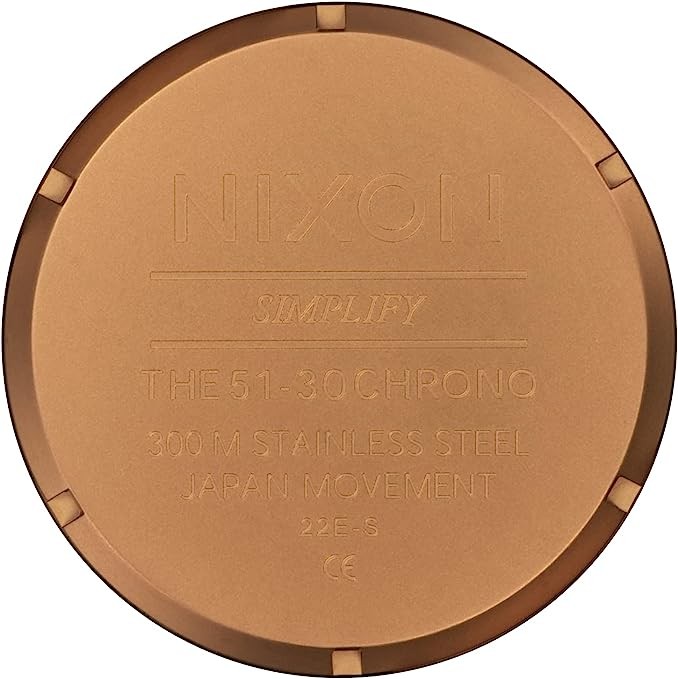 The Nixon 51-30 Chronograph features a stainless steel case and bracelet with a gun gold dial finish featuring eerie hands and plate detailing.