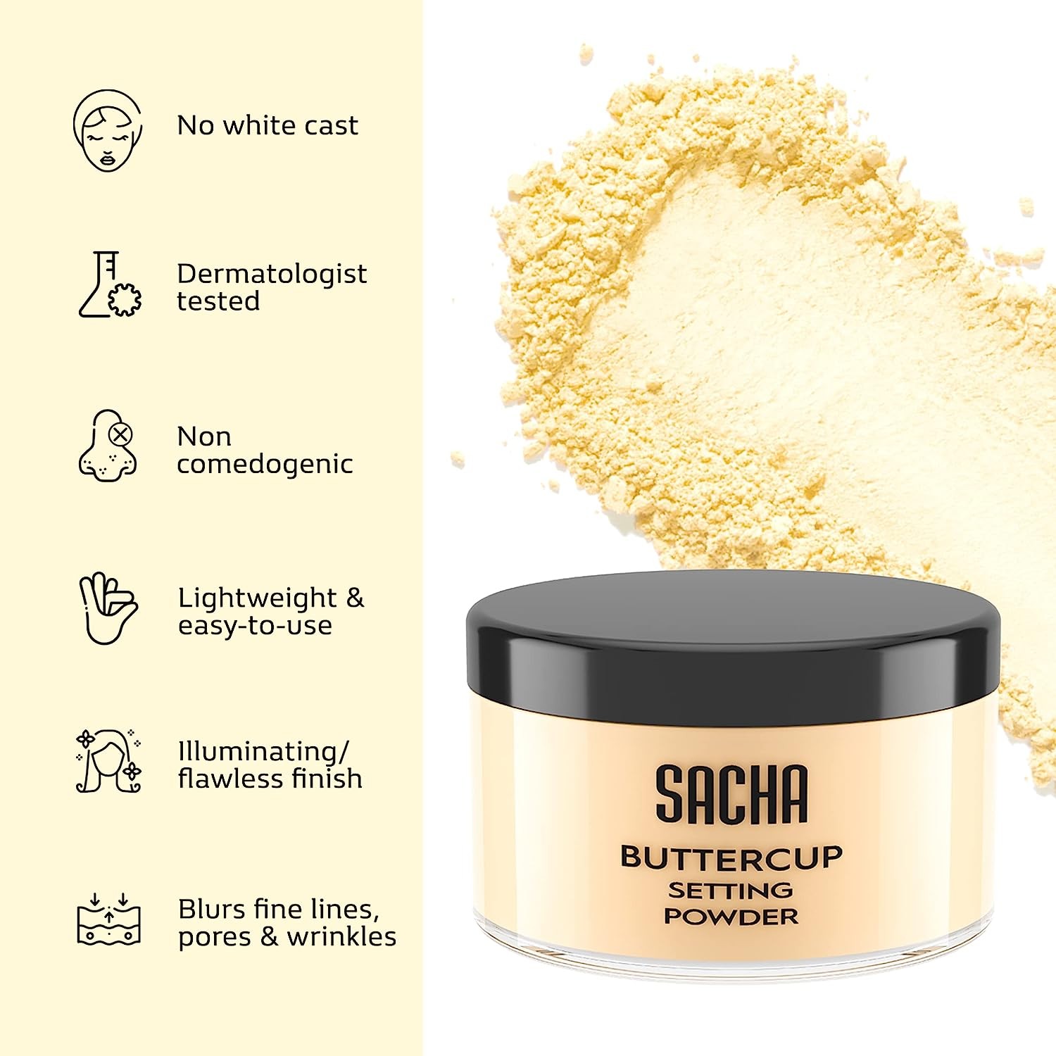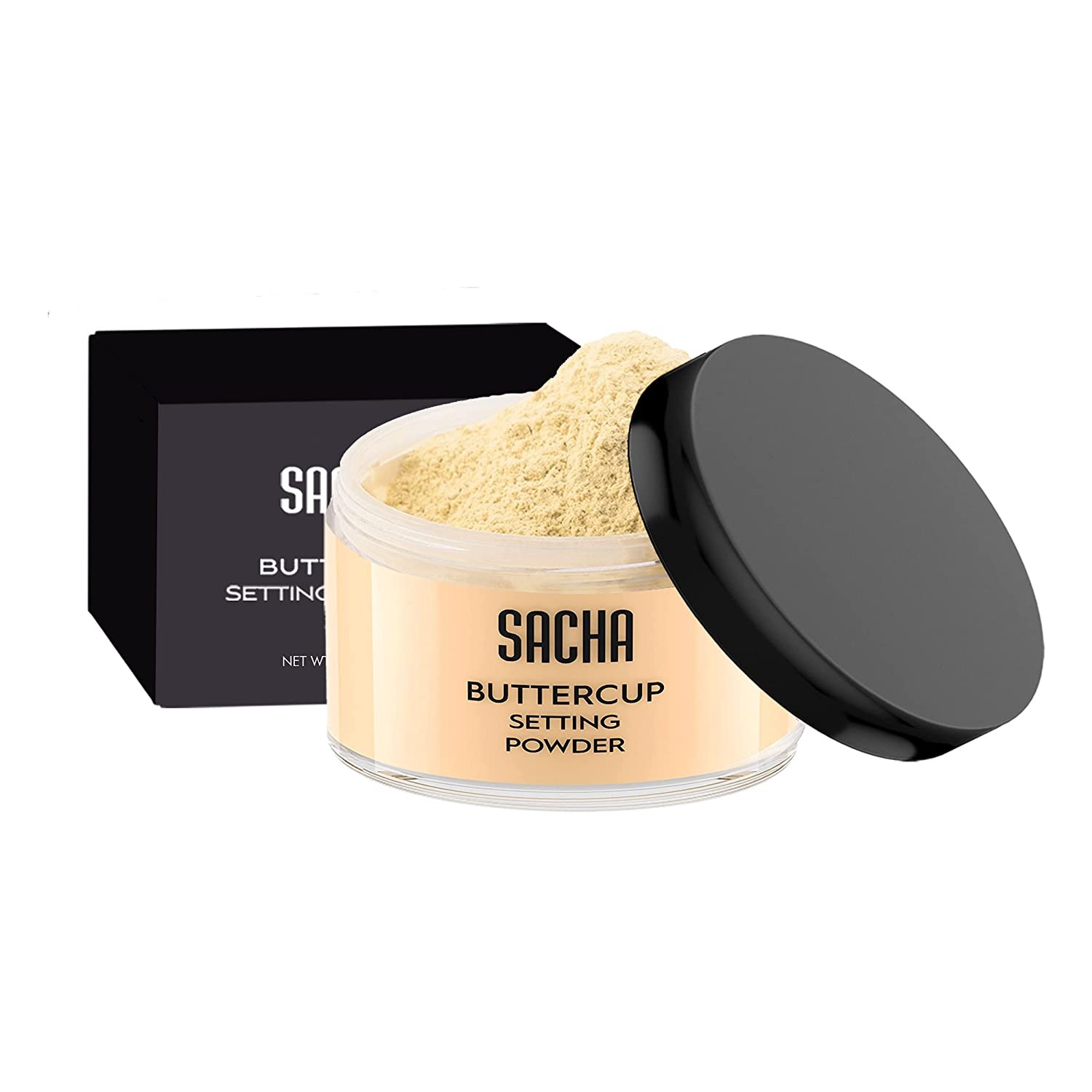 Sacha BUTTERCUP LIGHT Setting Powder. Camera Ready. No White Cast or Ashy Flashback. Blurs Fine Lines, Pores & Wrinkles. Controls Oil & Shine. For Light Skin Tones, 1.75 oz.
