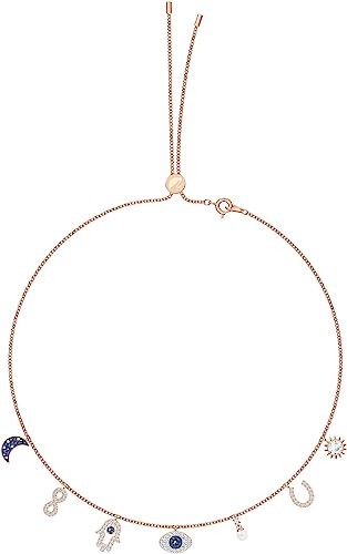 Item Shipping: 1 x Swarovski Symbol Charm Necklace, 19 5/8 inches long delicate rose gold plated chain, includes seven symbolic blue and white charms, comes in a Swarovski box