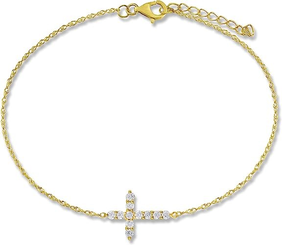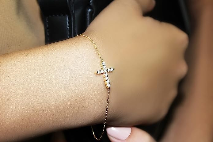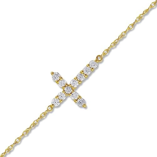 Classic Bloom - This Stunning Sideways Cross Bracelet in 14k Yellow Gold and 11 Natural Diamonds Totaling 0.33 Carats, H-I Color, 7 to 8 Inches Adjustable Rope Chain and Lobster Claw Clasp . The luminous, flawless finish lends a luxurious feel that suits a variety of clothing and skin tones.