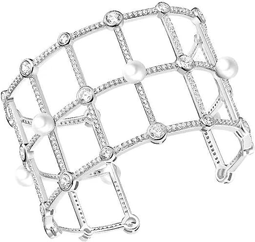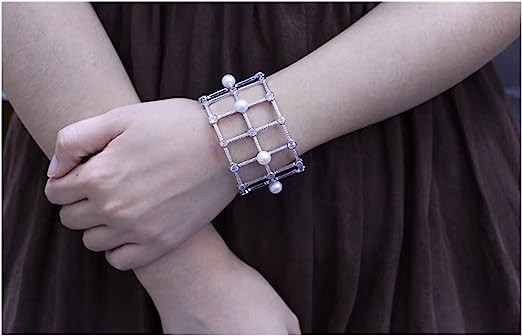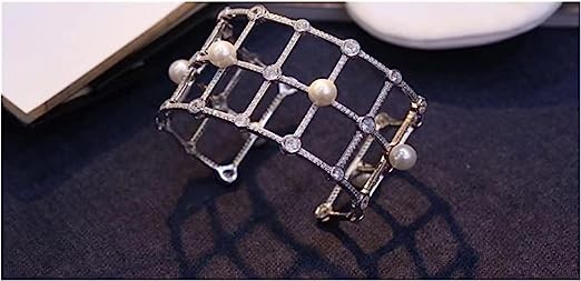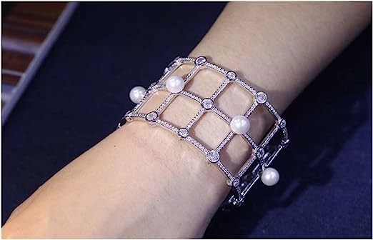 ALREMO HUANGXING - Fashion Luxury Design Real S925 Sterling Silver Shiny Pearl Bangles Jewelry Compatible with Elegant Women Hollow Circle Bracelet (Metal Color : Silver Plated)