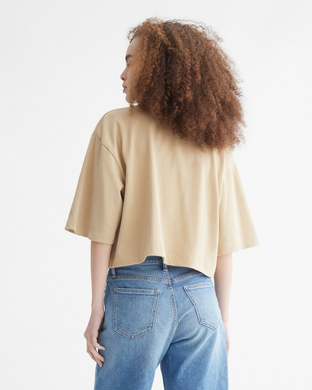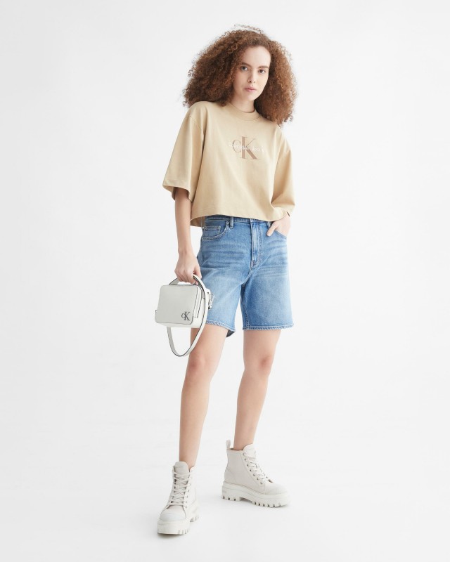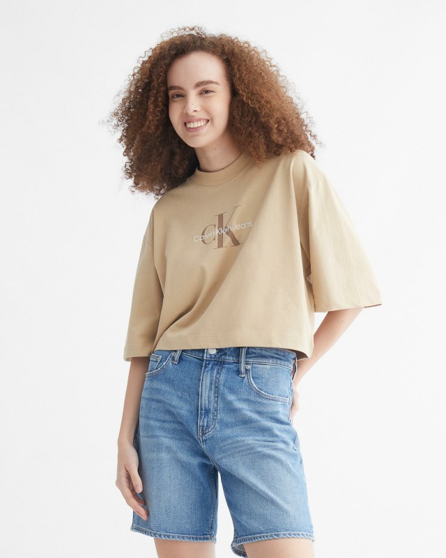 Calvin Klein Jeans' signature monogrammed T-shirt is cut in a cropped boxy silhouette with half sleeves for street appeal.