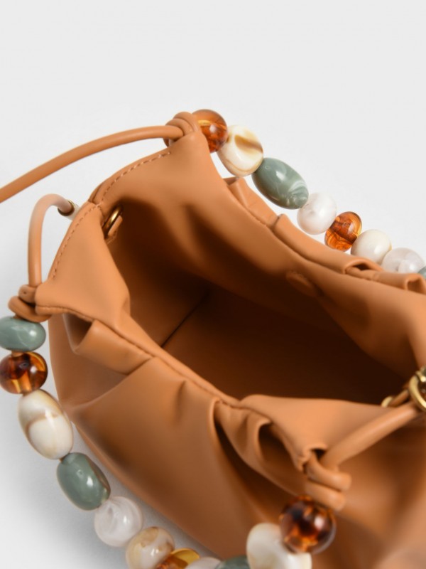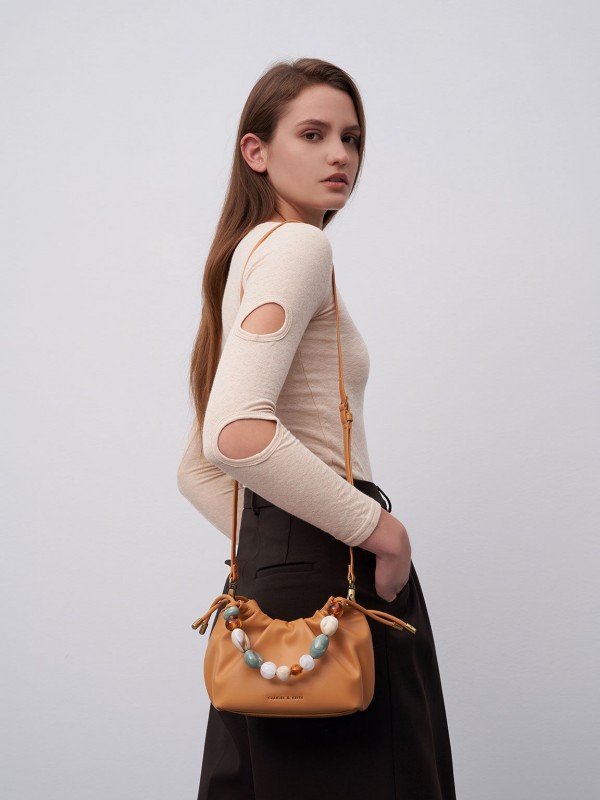 When the cloud-like Aviary bucket bag meets the rich color of pumpkin orange, it is a passionate collision of boldness and childlikeness. The small but eye-catching bag is the best complement to the large printed pettiskirt. If it is paired with a chiffon dress, it will look more light. If it is paired with a plain knee-length A-line skirt, it will add a touch of gracefulness. The translucent beads used as the shoulder strap have a gorgeous feeling, and overall it is a very feminine small bag.