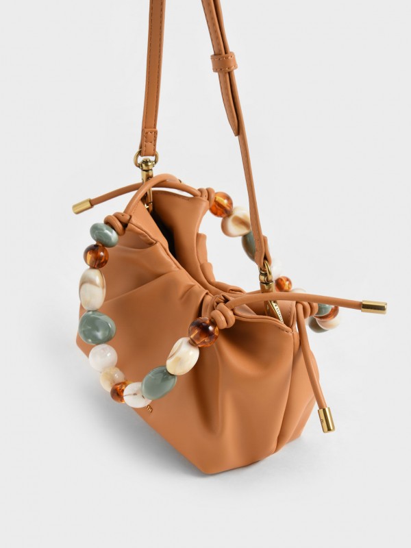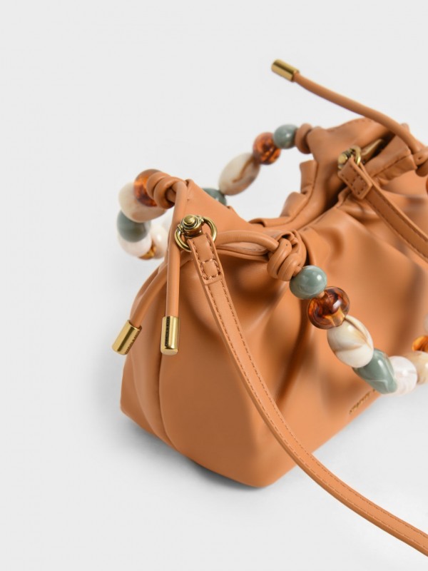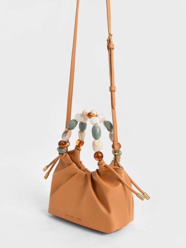 Aviary colorful beaded bucket bag, pumpkin orange, hi-res