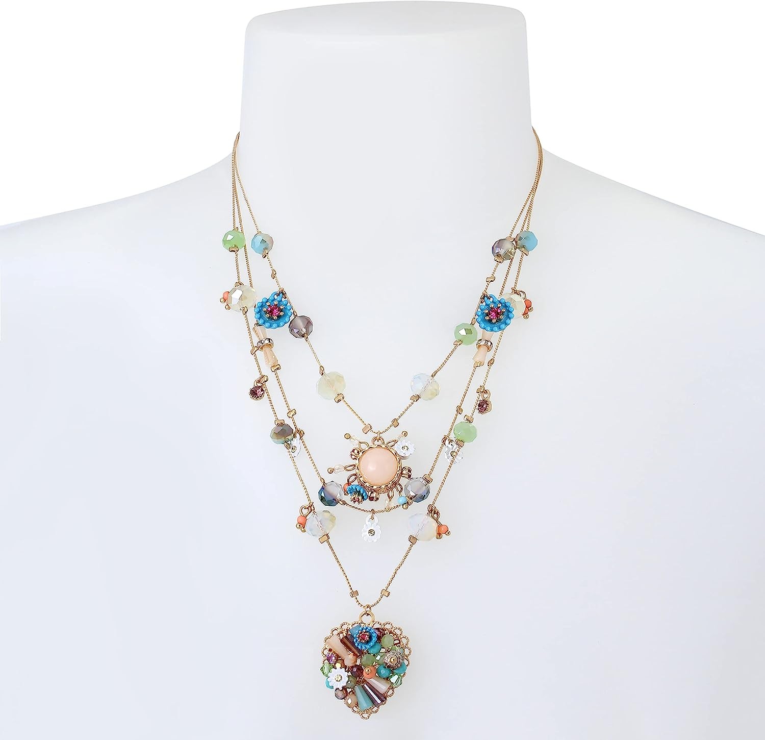 Betsey Johnson Braided Mixed Multicolor Beaded Flower Heart Fantasy Necklace, Metal Plastic Glass