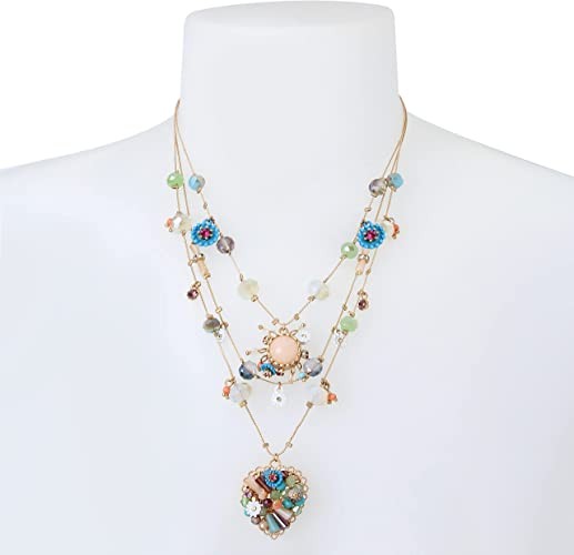 Betsey Johnson Braided Mixed Multicolor Beaded Flower Heart Fantasy Necklace, Metal Plastic Glass