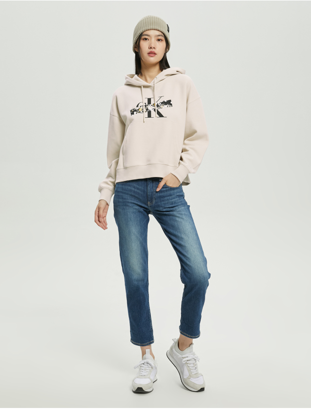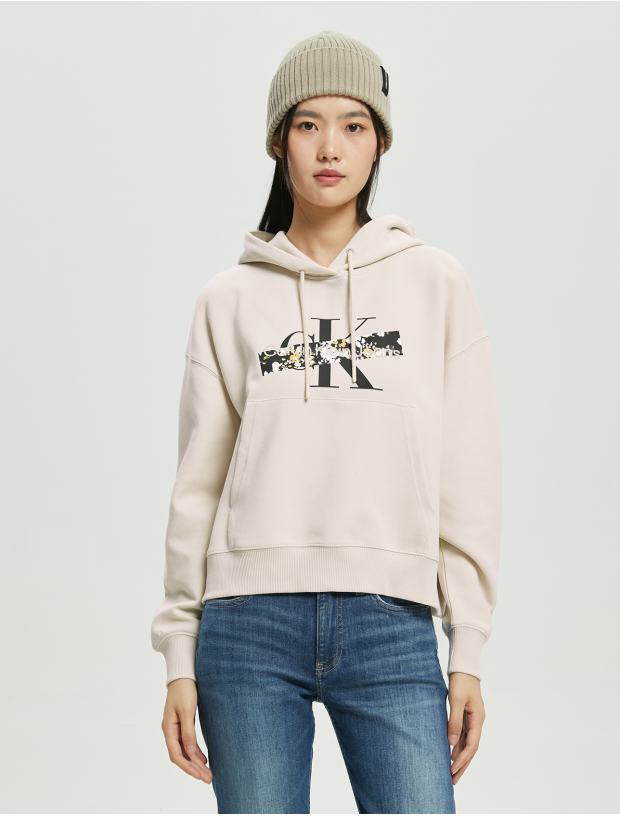 Calvin Klein 22 autumn and winter new ladies fashion overlapping LOGO classic drawstring hooded sweater J220165