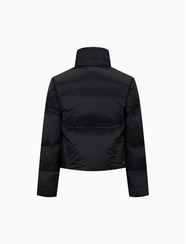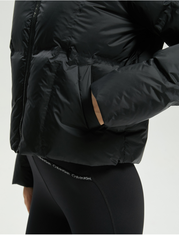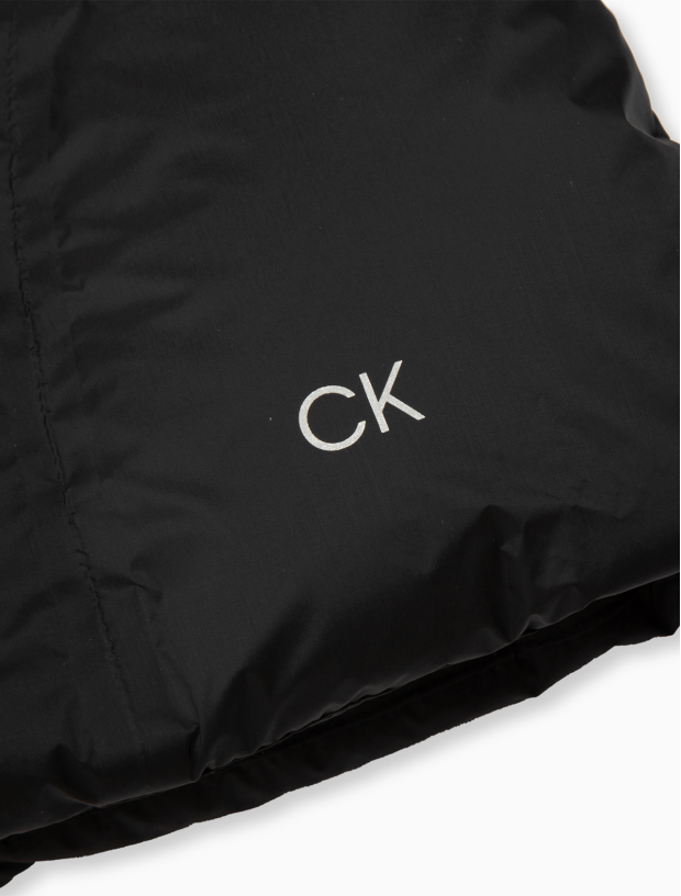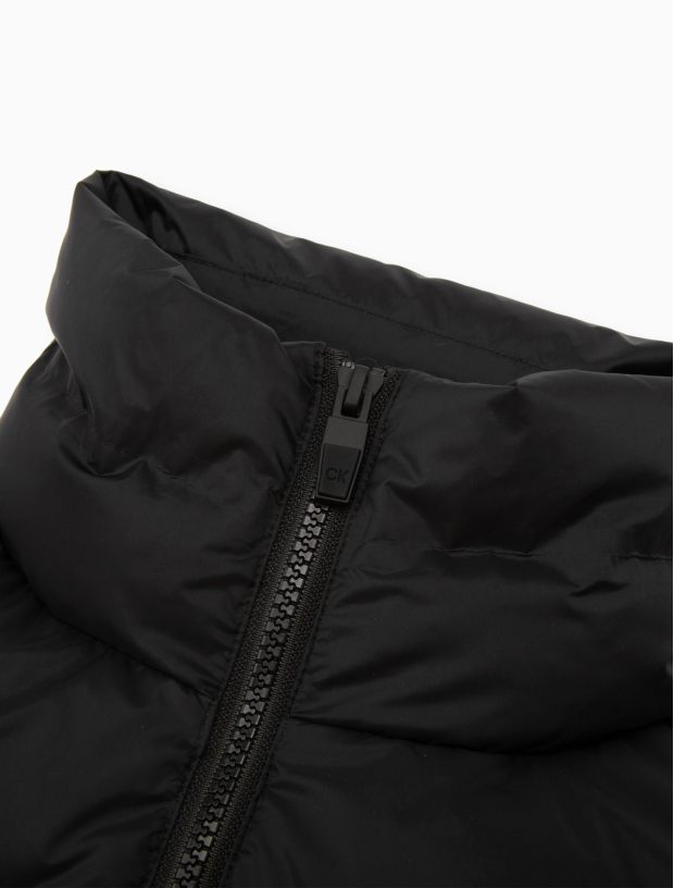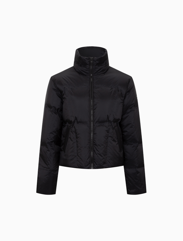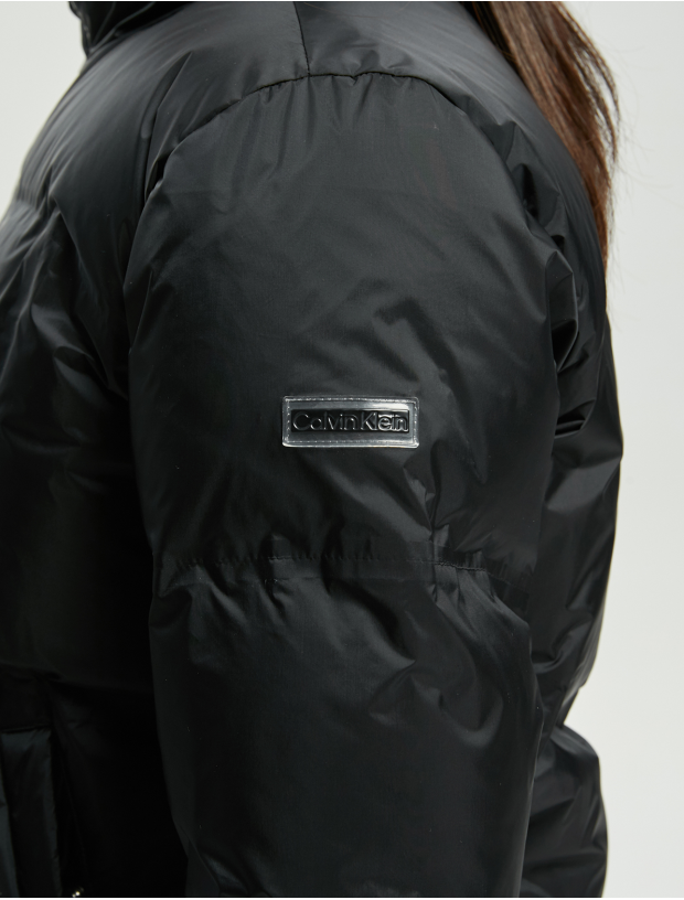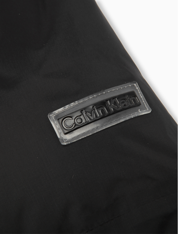 High stand collar for added warmth and comfort. Smooth zip closure for easy dressing. Classic embossed LOGO patch to enhance recognition. High-count comfortable fabric, warm and cold. Contrasting color CK printing, delicate embellishments. Adjustable drawstring hem for sleek styling.