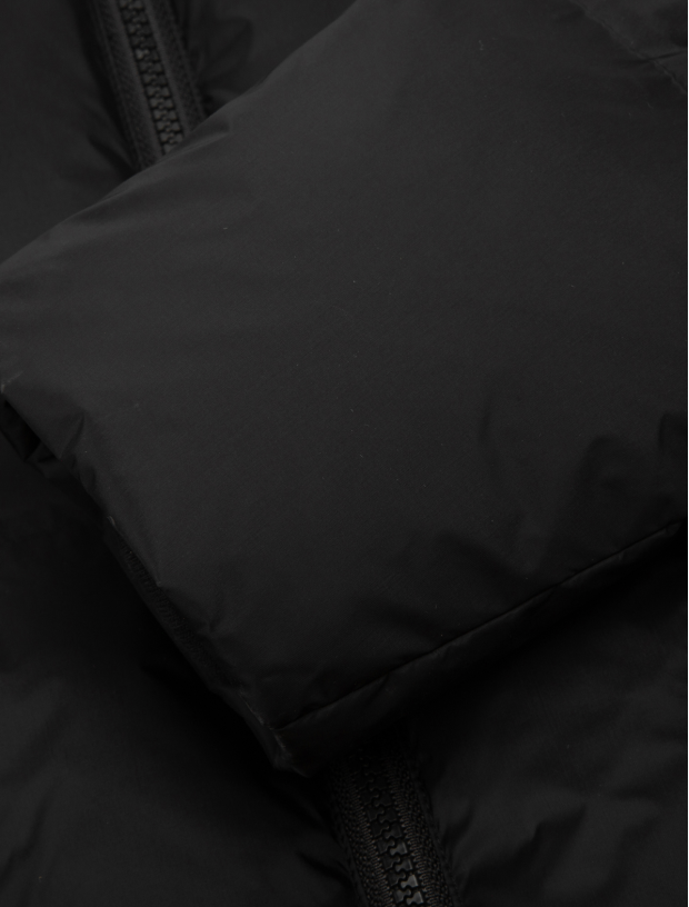 100% nylon; lining: 82% polyester; 17% viscose; 1% other fibers; filling: 70% duck down; 30% feather