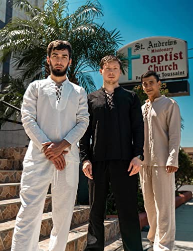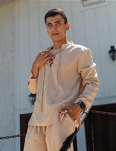 【Set of 2】1. The men's long sleeve henley features a stand collar, tie V neck, slit cuffs and hem, and a straight cut hem. 2. Men's casual board shorts feature an elastic drawstring waist, loose fit, two slant pockets and a back pocket, perfect for storing your phone, sunglasses, and more.