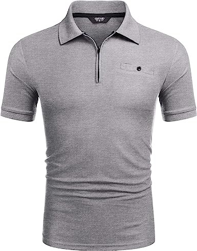 COOFANDY Men's Zipper Polo Shirt Short Sleeve Golf Shirt Slim Fit Casual T-Shirt with Pockets