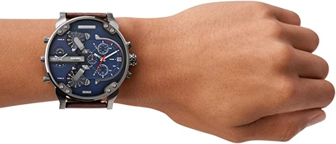 Diesel Men's 57mm Mr. Daddy 2.0 Quartz Stainless Steel and Leather Chronograph Watch,Color:Silver,Brown(Model:DZ7314),Brown,Mr. Daddy