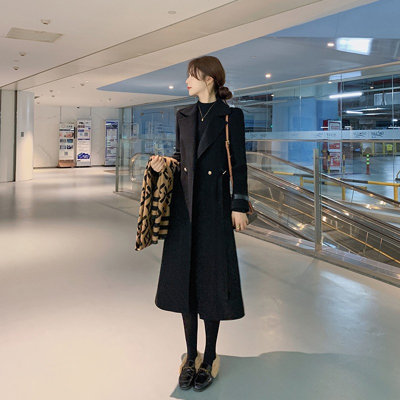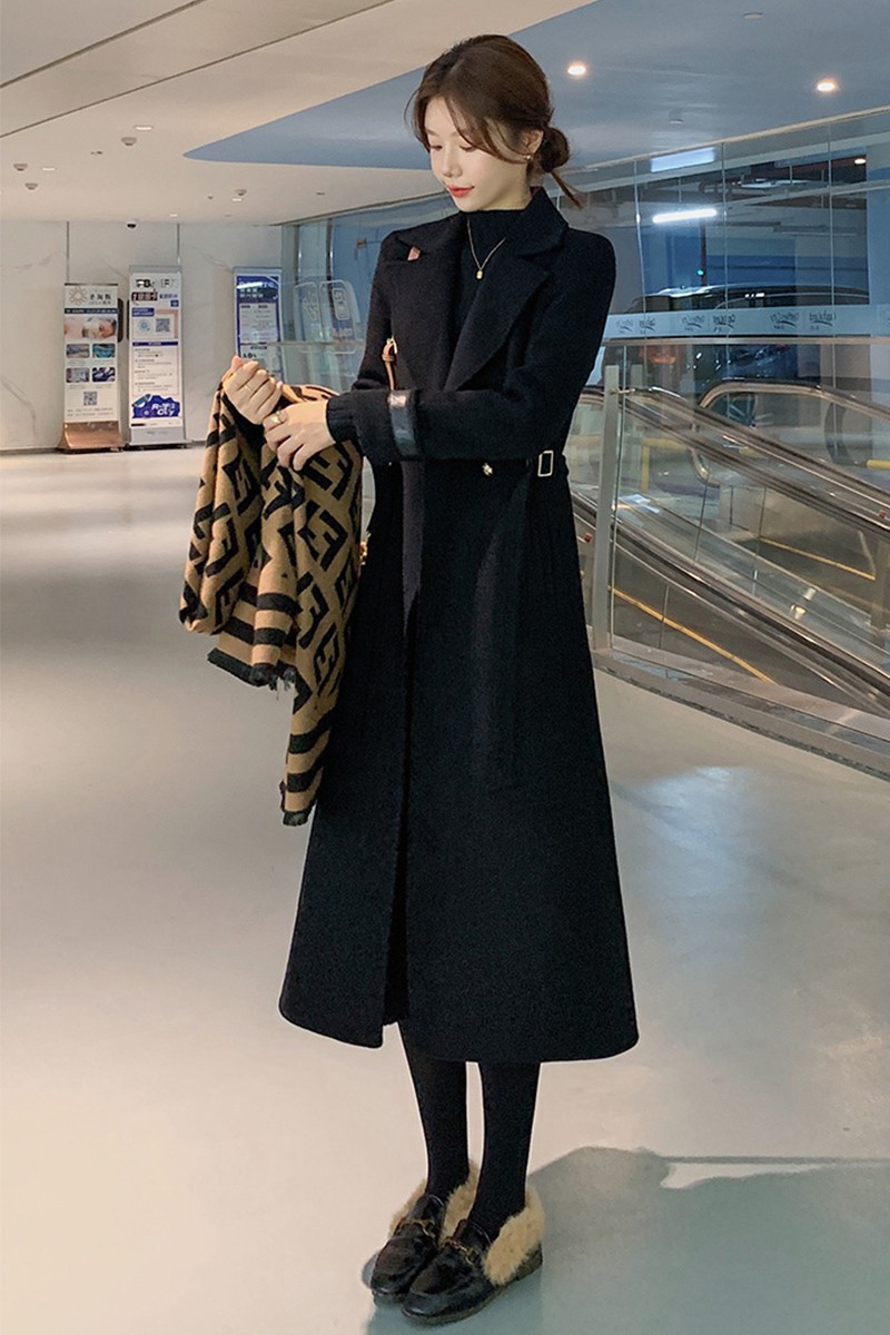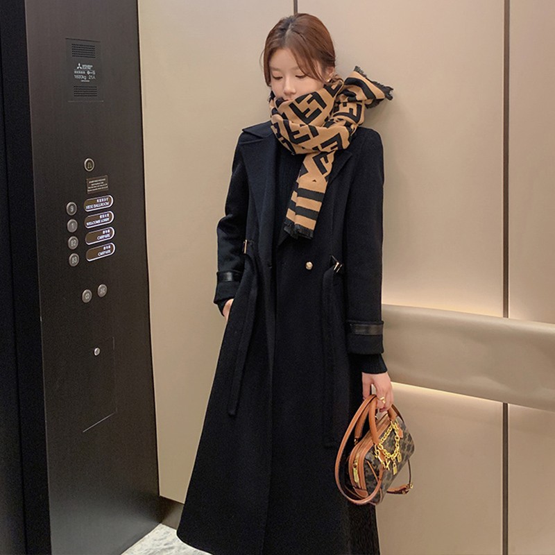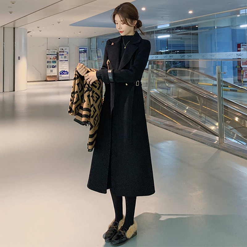 Double-sided cashmere coat women's winter new mid-length black thickened woolen autumn and winter high-quality woolen coat