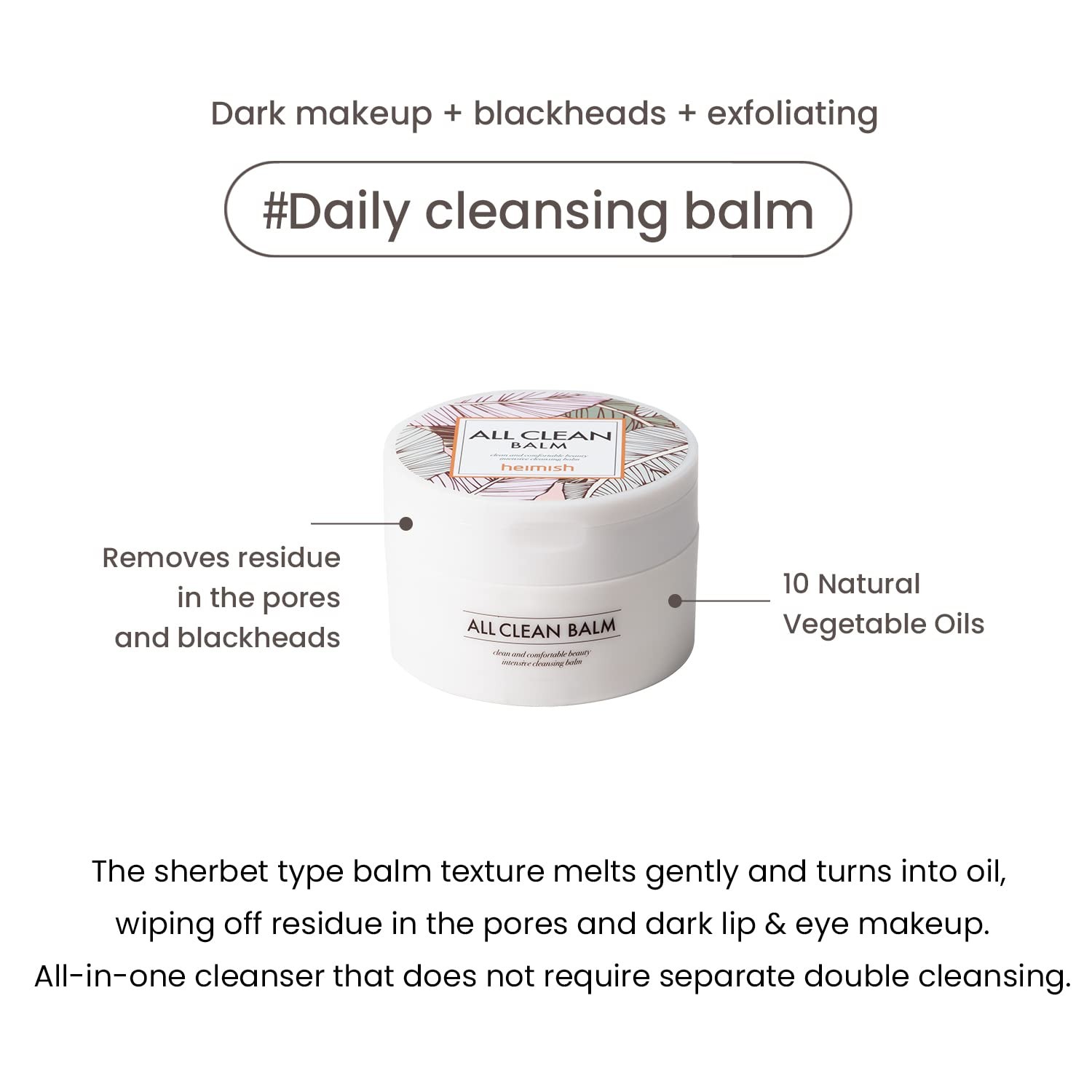 • All Clean balm: Solid cleanser that melts into oil and gently cleanses the face, clearing up blackheads and clogged pores