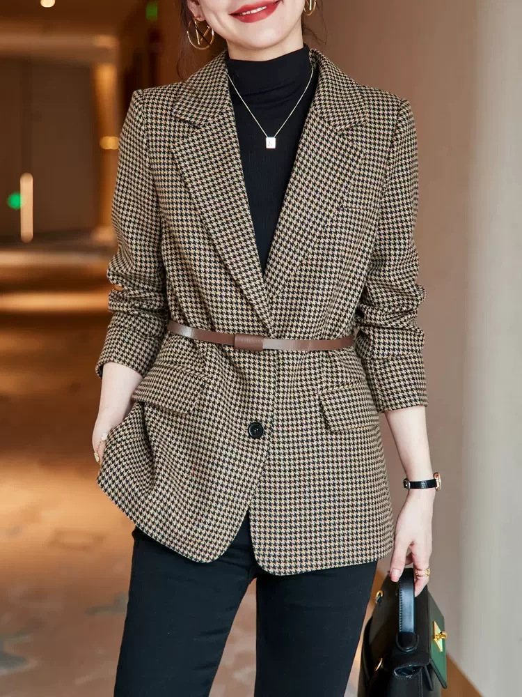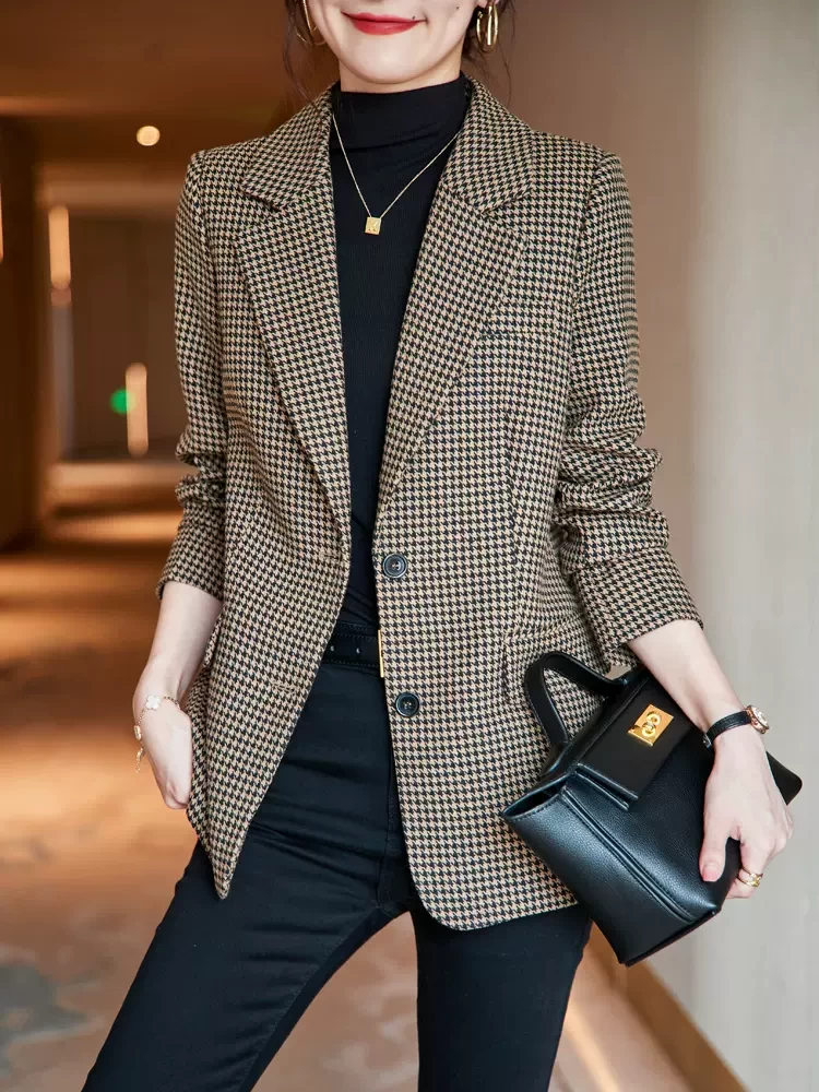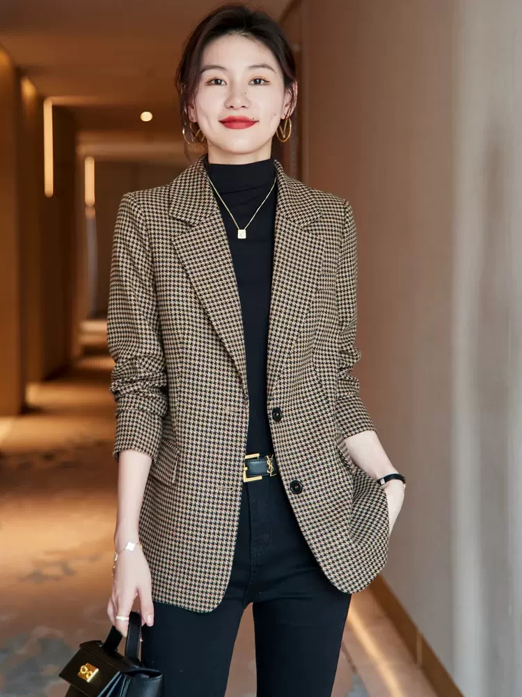 High-quality woolen suit jacket women autumn and winter new slim plaid British style houndstooth woolen coat women
