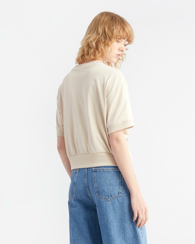 A new addition to our collection of must-haves for all seasons. This cropped tee is crafted from a soft cotton-blend fabric with Coolever moisture-wicking technology for comfort and breathability. The front knot lends a playful touch.