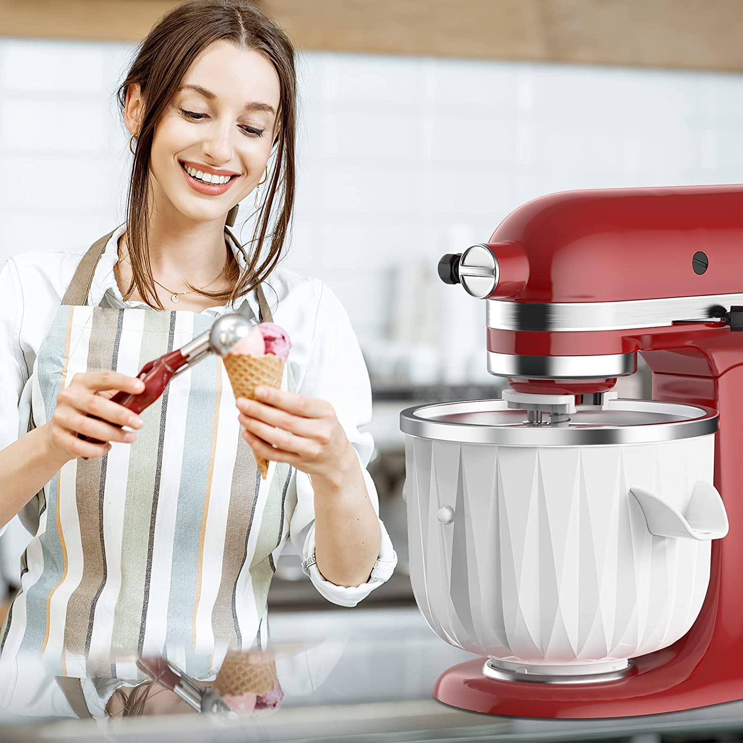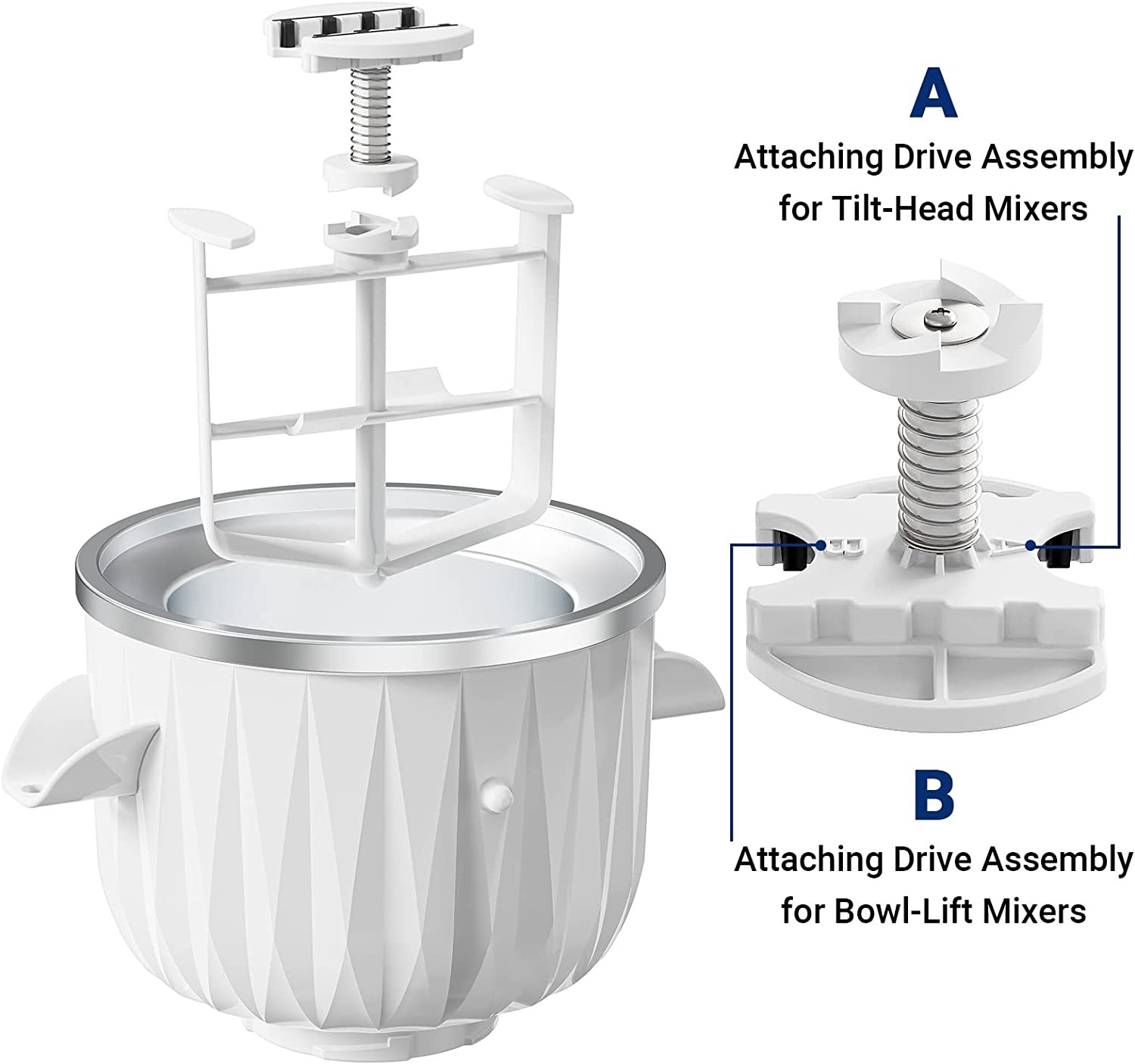 • Easy to Use: This ice cream attachment for kitchenaid assembly and handles is easily connects to your kitchenaid stand mixer, to quickly start churning your favorite recipes. Dasher for Thorough Ingredient Incorporation Rotates inside the bowl to spread, scrape and mix for even freezing.