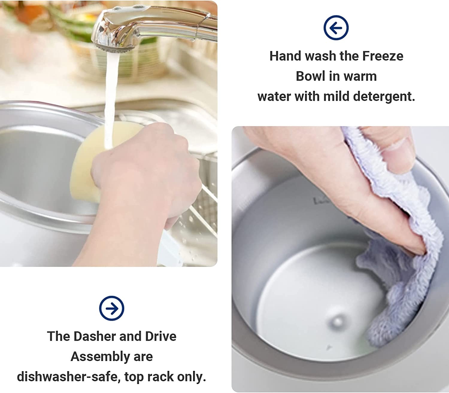 • Easy to Clean: Once the bowl has reached room temperature, simply clean with warm, soapy water. Please Note: Never immerse the kitchenaid ice cream maker attachment in water or other liquid, also never wash in dishwasher.