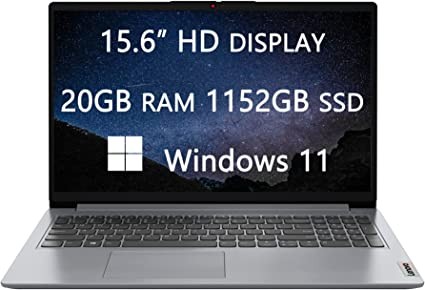 Lenovo Ideapad 1 15 HD Laptop, 2023 Newest Upgrade, Athlon Silver 3050U, 20GB RAM, 1152GB(128GB + 1TB) SSD, HDMI, Ethernet, Webcam, Wi-Fi, Bluetooth, Light-Weight, Windows 11, LIONEYE HDMI Cable