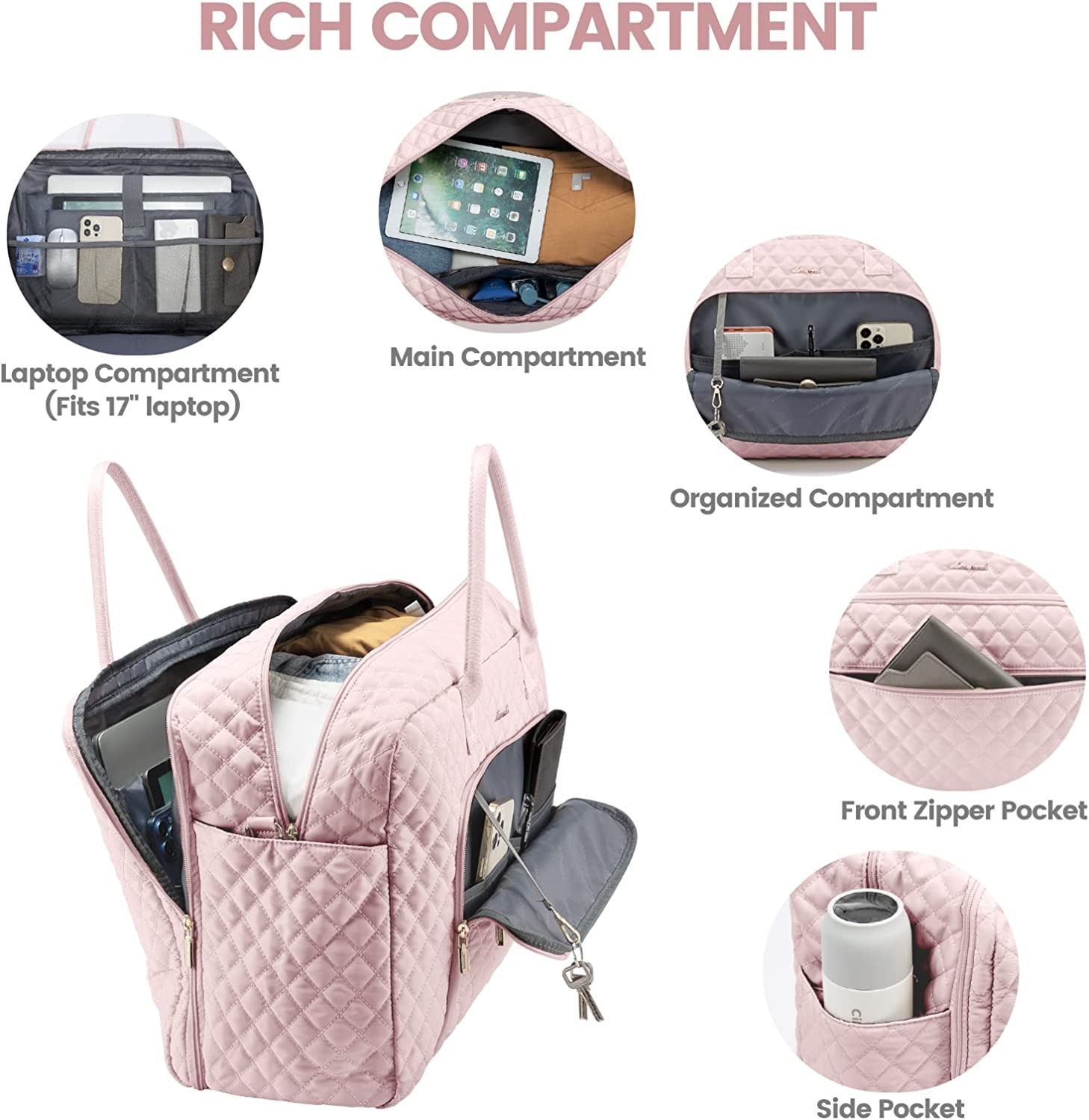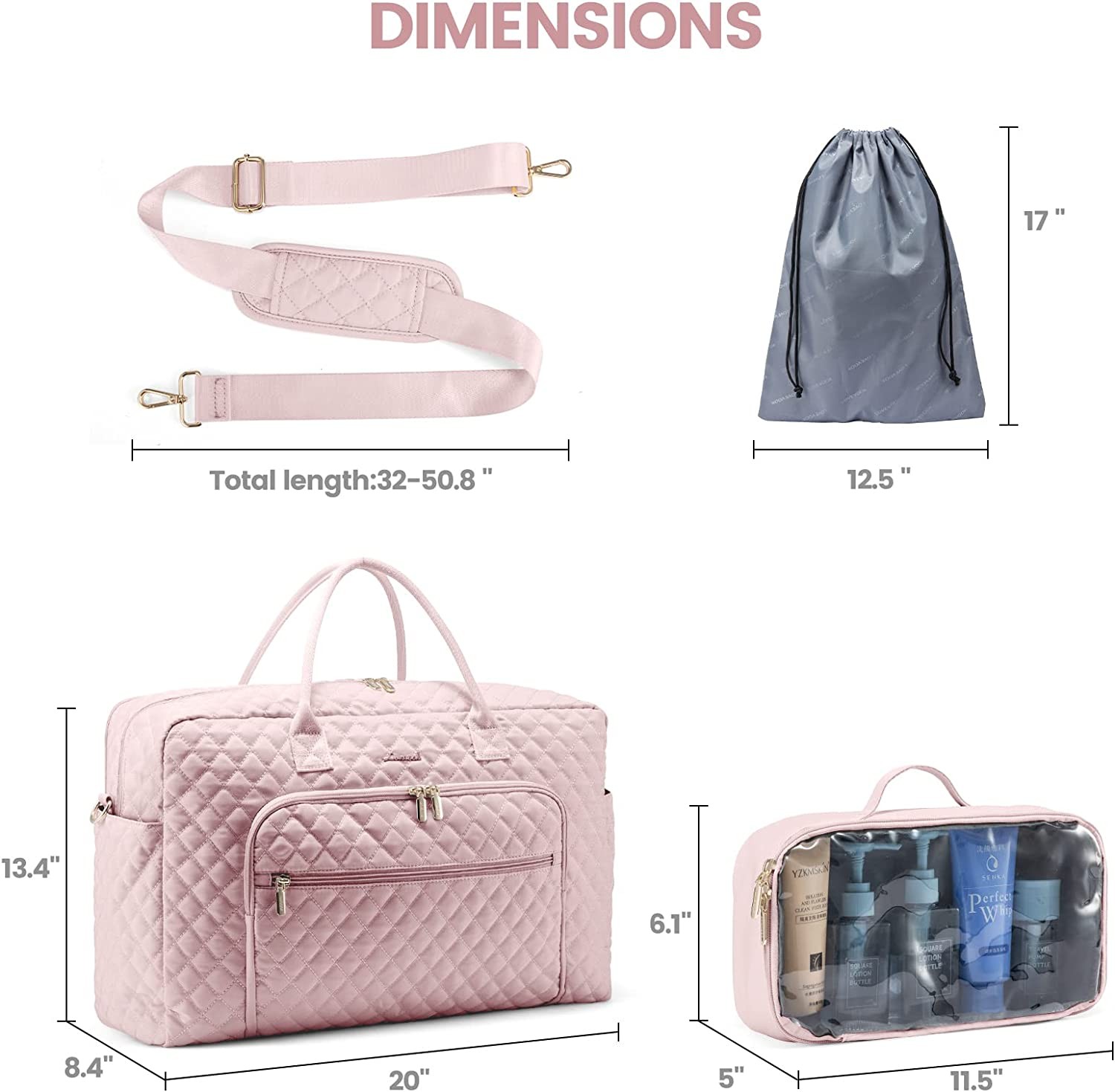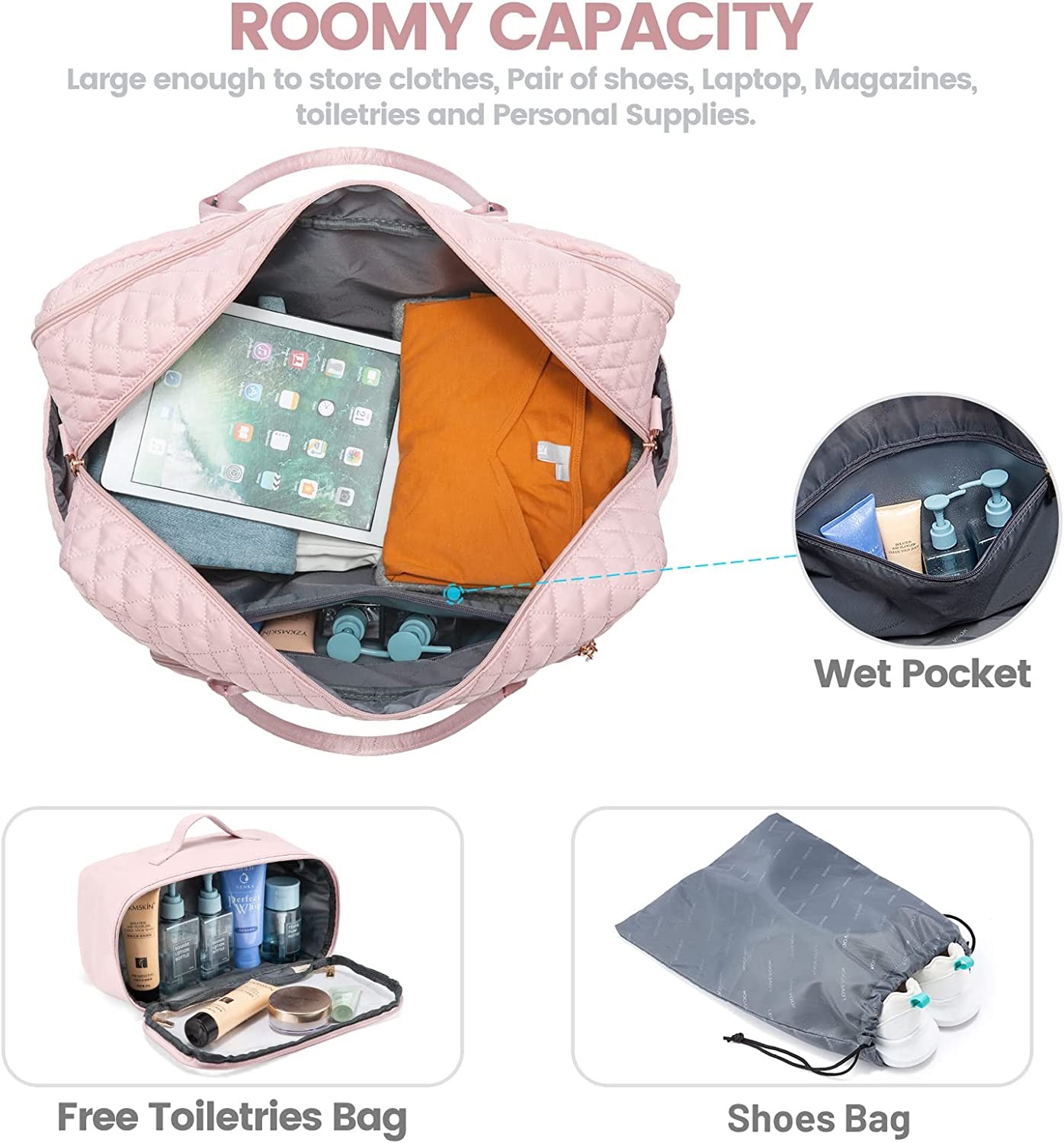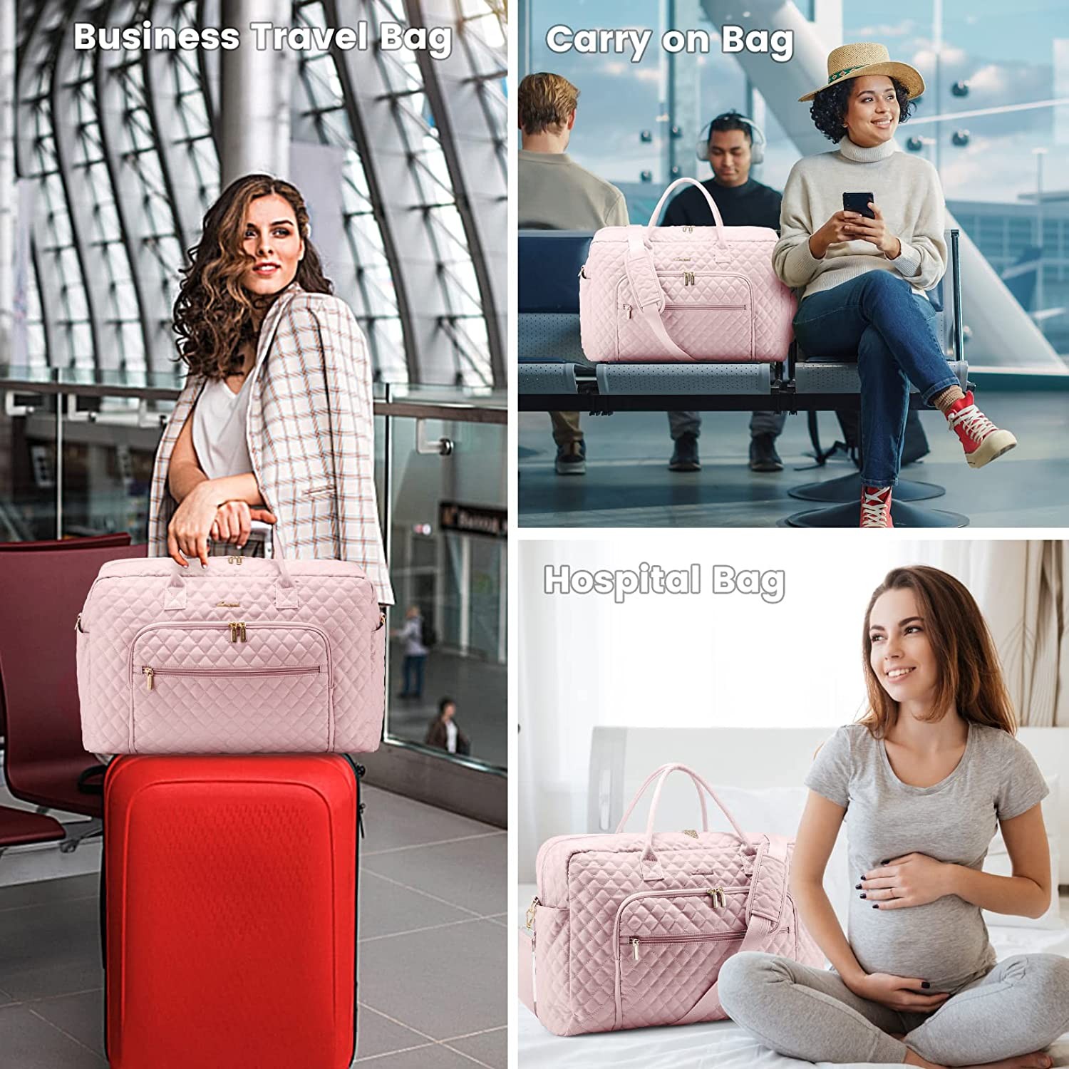 LOVEVOOK Travel Duffle Bag, Weekend Bag for Women, with Amenity Bag, Laptop Compartment, Yoga Gym Bag, Shoe Bag with Wet Bag, Hospital Bag for Labor and Delivery, Pink