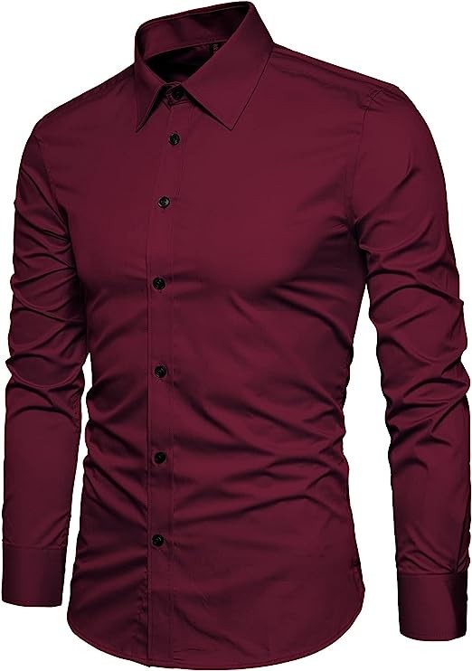 Manwan walk Men's Slim Fit Business Casual Cotton Long Sleeve Solid Color Button Down Dress Shirt