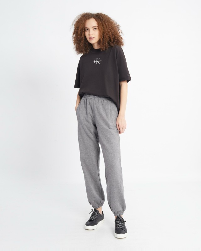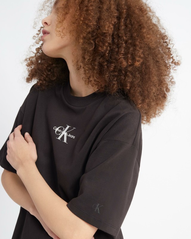 The Calvin Klein Jeans women's tee is made from 100% cotton in a relaxed silhouette and features a metallic monogram on the chest.
