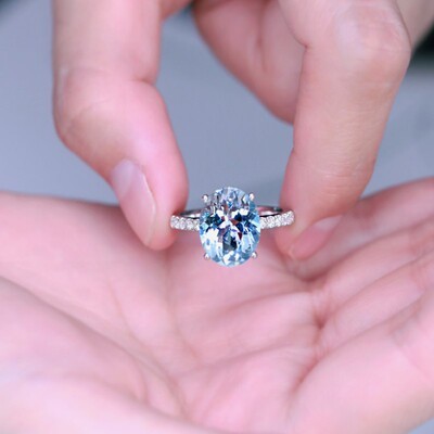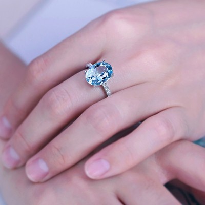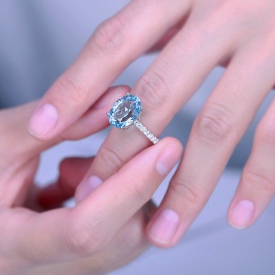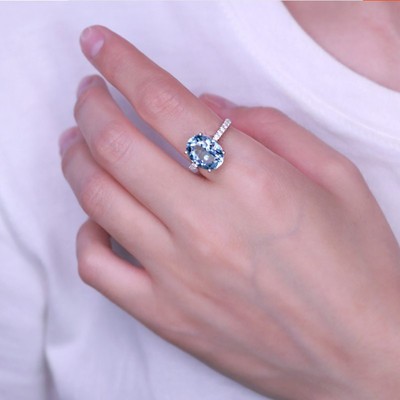 Natural Aquamarine Ring Exquisite Women's Wedding Ring 925 Silver Platinum Inlaid Diamond Jewelry Gift