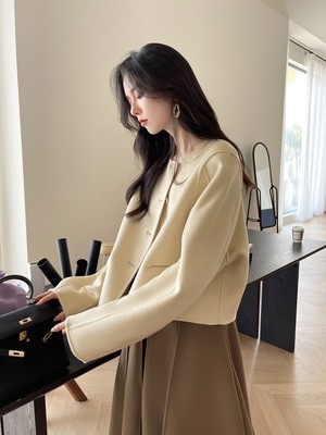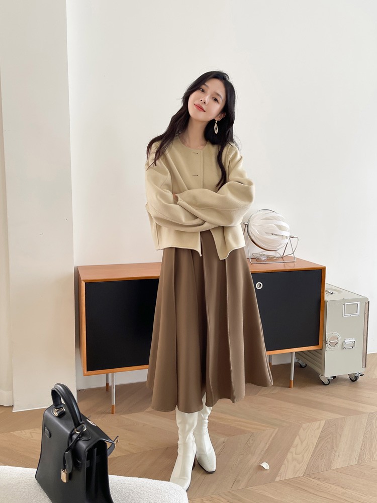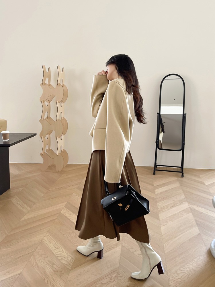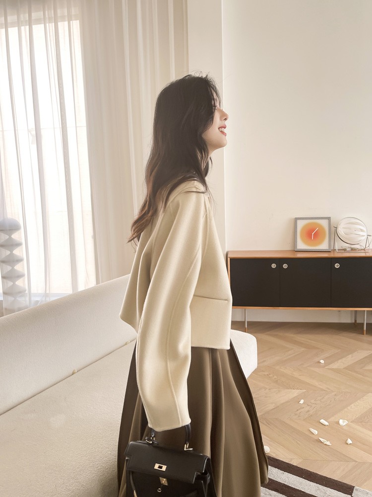 New autumn and winter double-sided cashmere coat women's short section Korean style high-quality yellow woolen coat