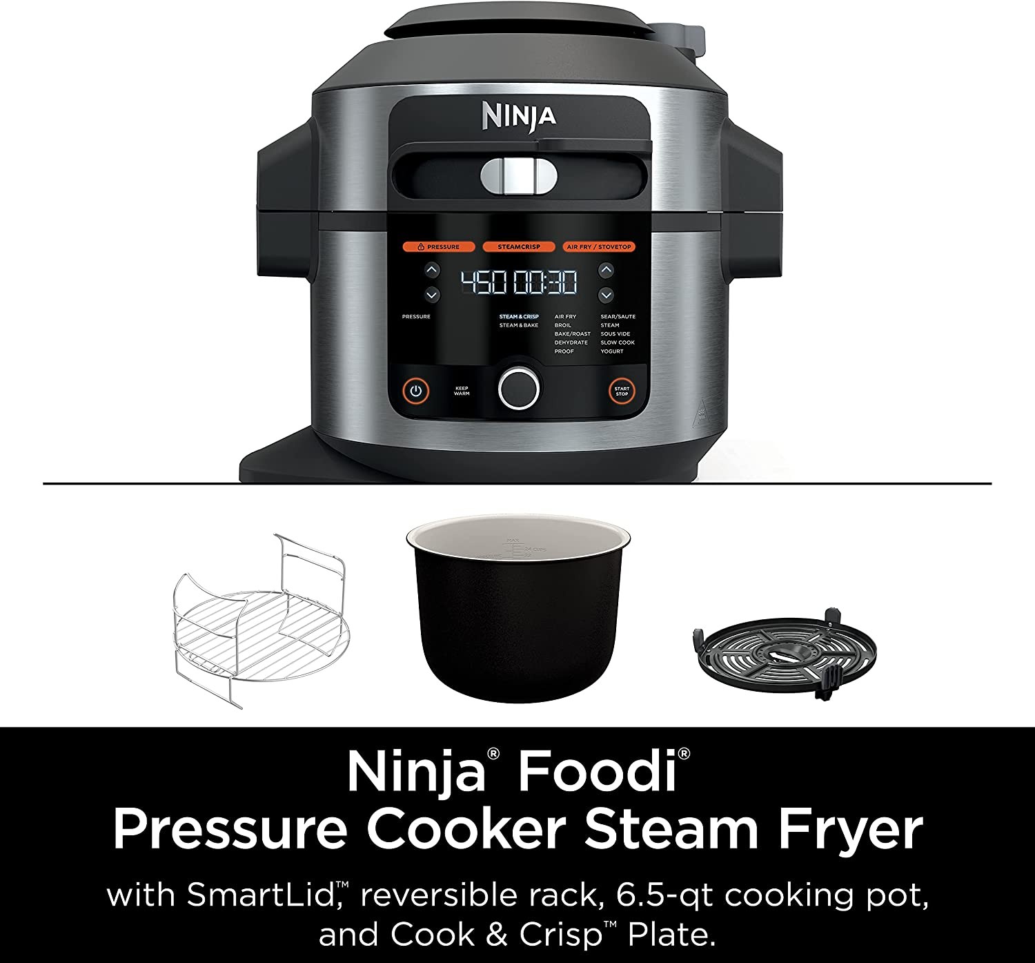 • NINJA FOODI PRESSURE COOKER STEAM FRYER: Large capacity with the ability to pressure cook, air fry, and SteamCrisp - all under one SmartLid.