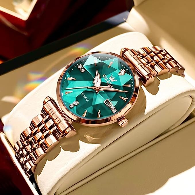 ? THE MOST WORTHABLE WATCH GIFT ? This classic quartz diamond watch is worthy of the most beautiful ladies. OLEVS women's watches are exquisite and sophisticated, perfect for any occasion (such as Valentine's Day, Birthday, Anniversary, Halloween, Christmas, Thanksgiving, Mother's Day, etc.). Every OLEVS women's watch is carefully prepared and comes in beautiful packaging.