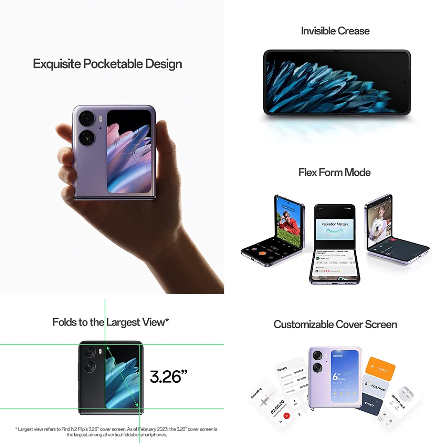 OPPO Find N2 Flip Dual-SIM 256GB ROM + 8GB RAM (GSM only | No CDMA) Factory Unlocked 5G Smartphone (Moonlit Purple) - International Version