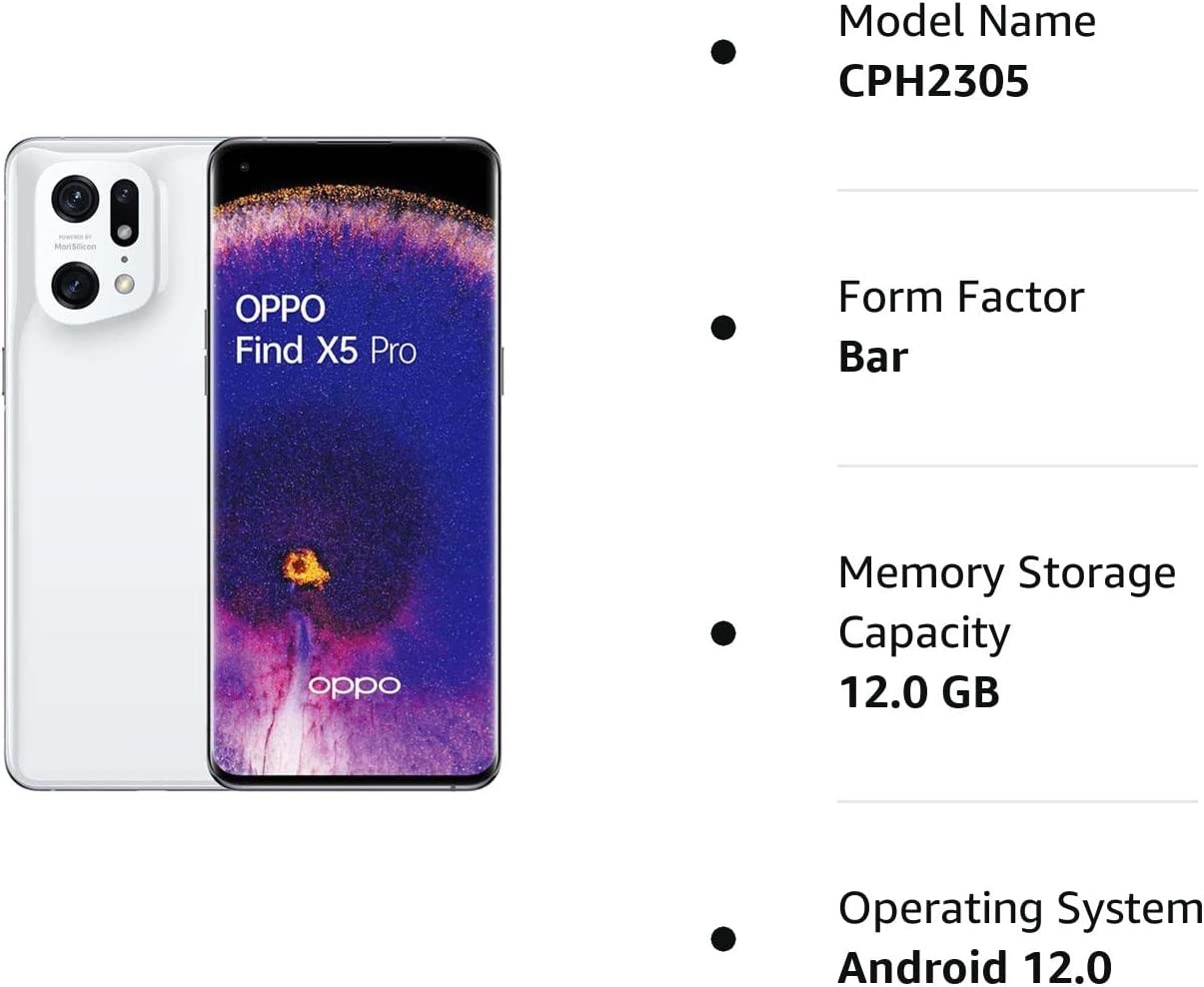 Oppo Find X5 PRO 5G Dual CPH2305 256GB 12GB RAM Factory Unlocked (GSM Only | No CDMA - not Compatible with Verizon/Sprint) Global Version- Ceramic White