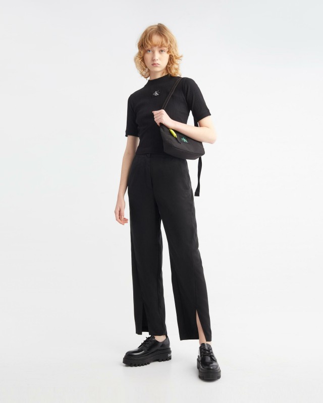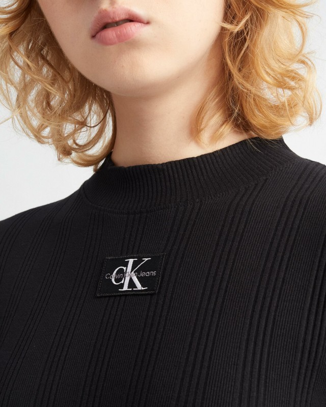 A petite cK Monogram badge elevates this rib-knit cotton turtleneck essential.