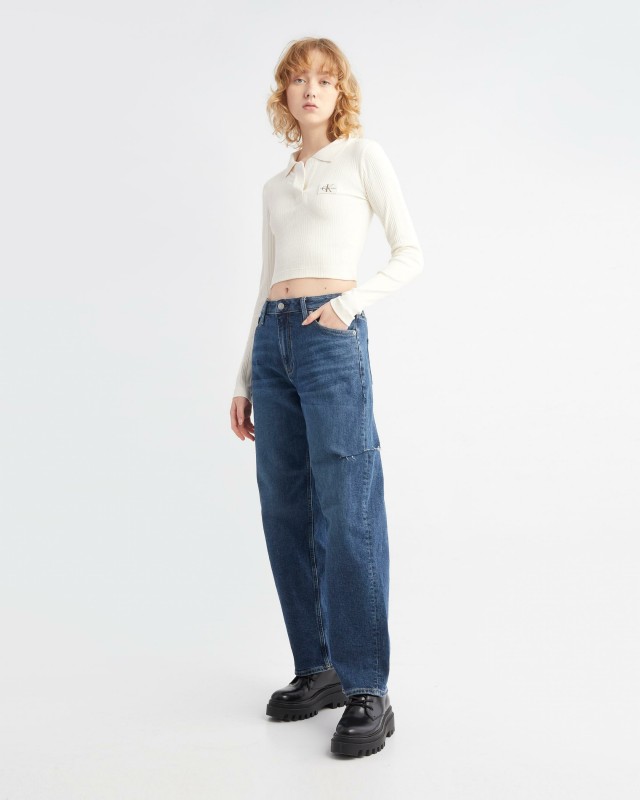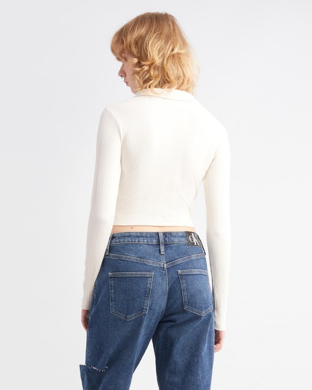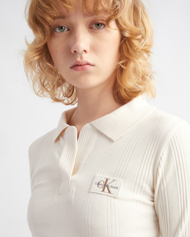 This ribbed-knit top features a baby-inspired silhouette and a simple cK monogram badge on the chest.