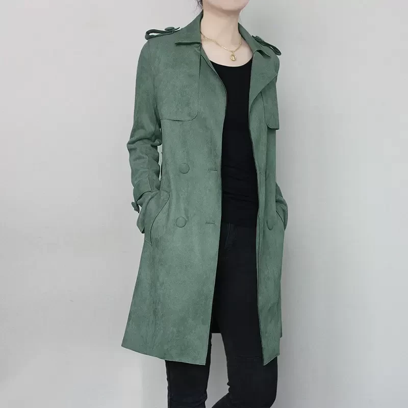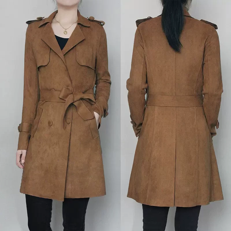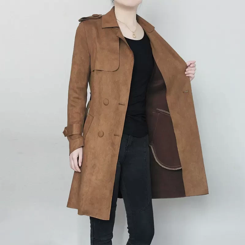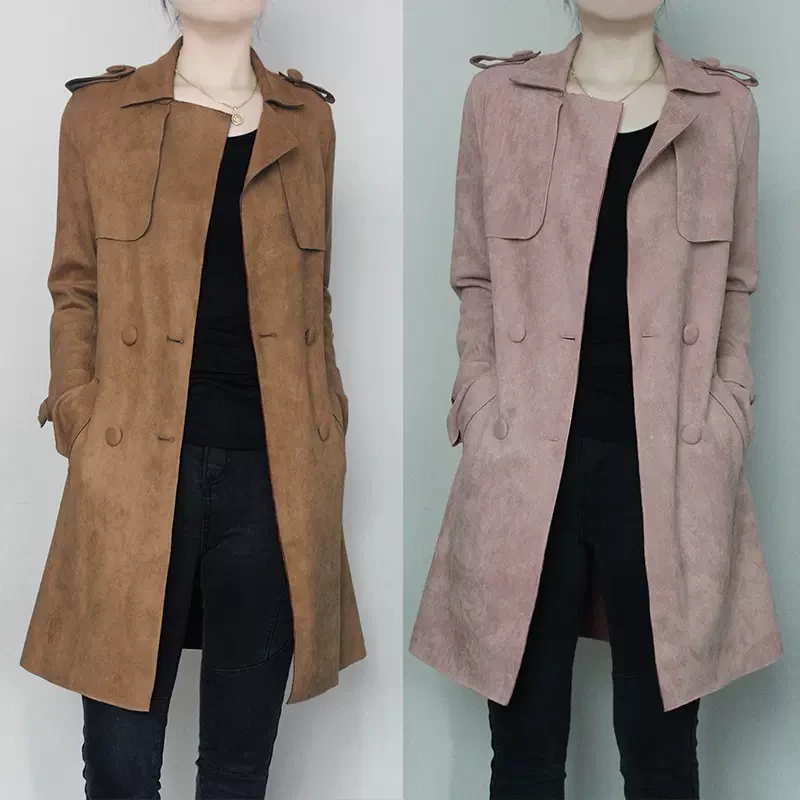 Suede windbreaker women's spring and autumn new mid-length small temperament jacket jacket slim fit drape