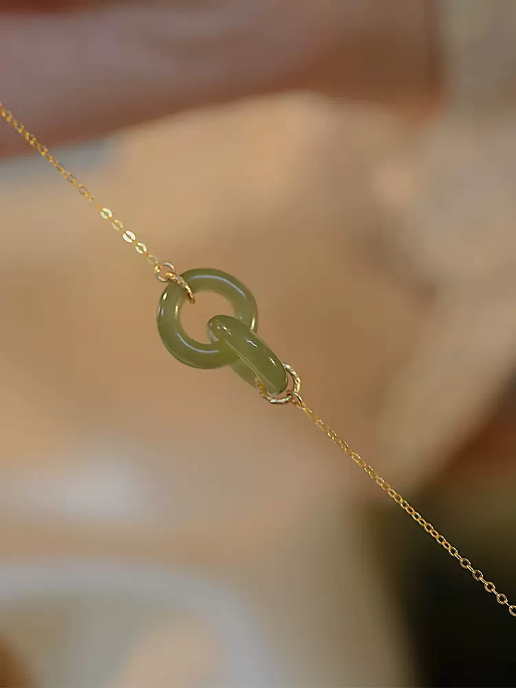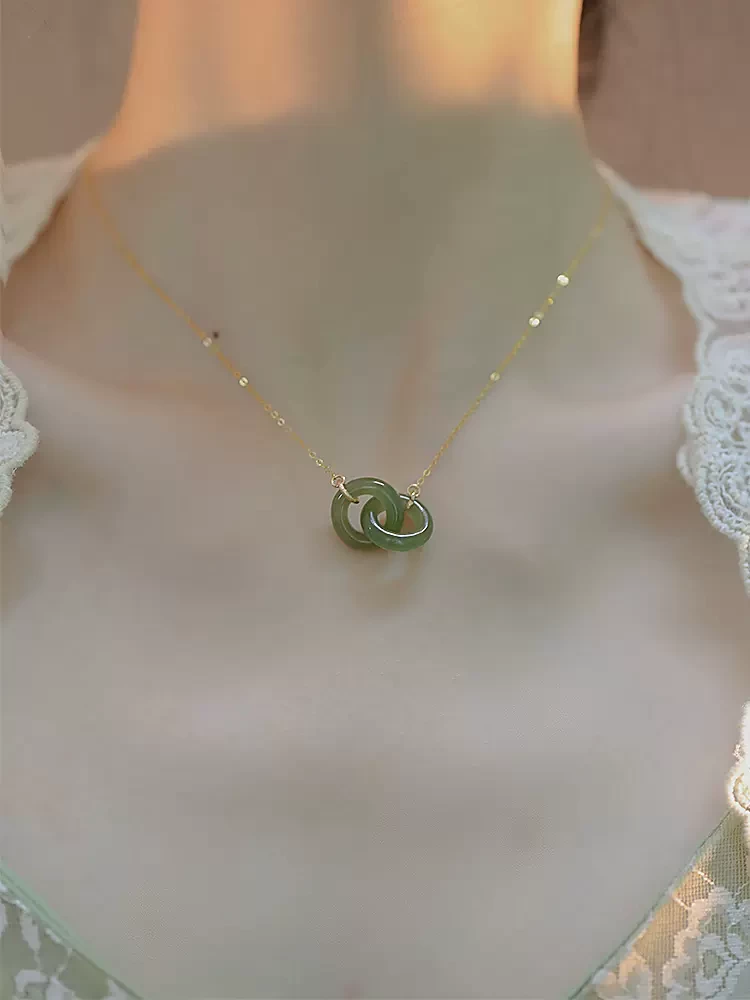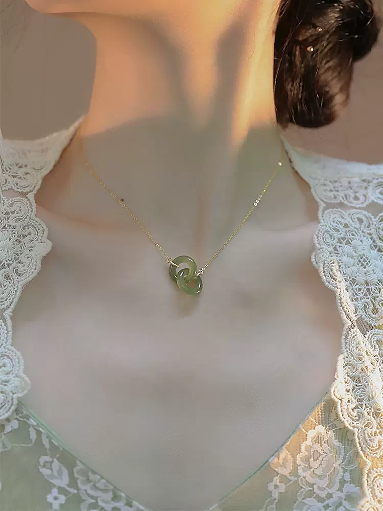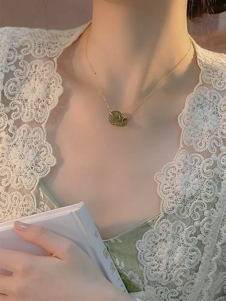 SUMOJEWEL interlocking * natural Hetian jade necklace necklace ins style net red light luxury niche can touch the water