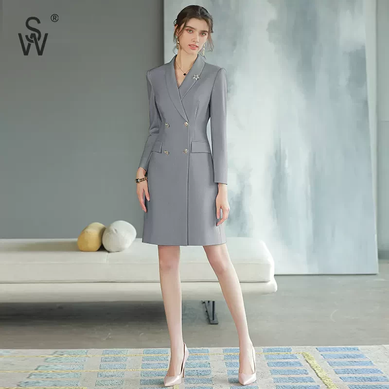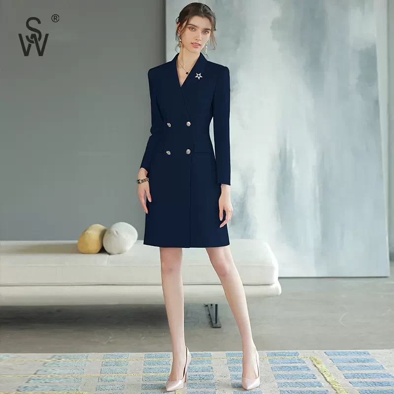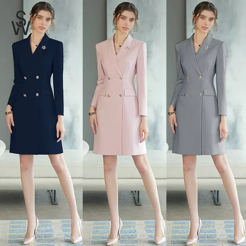 SW autumn long-sleeved pink host anchor professional dress female fashion western style slim skirt for formal occasions