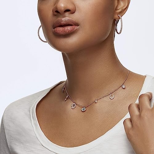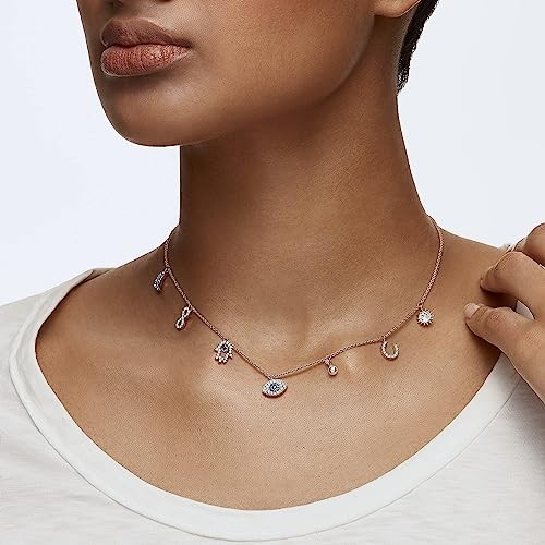 MINIMALIST & UNIQUE: This dainty rose gold necklace features a lucky horseshoe, infinity symbol, hamsa hand, and evil eye full of symbolism.