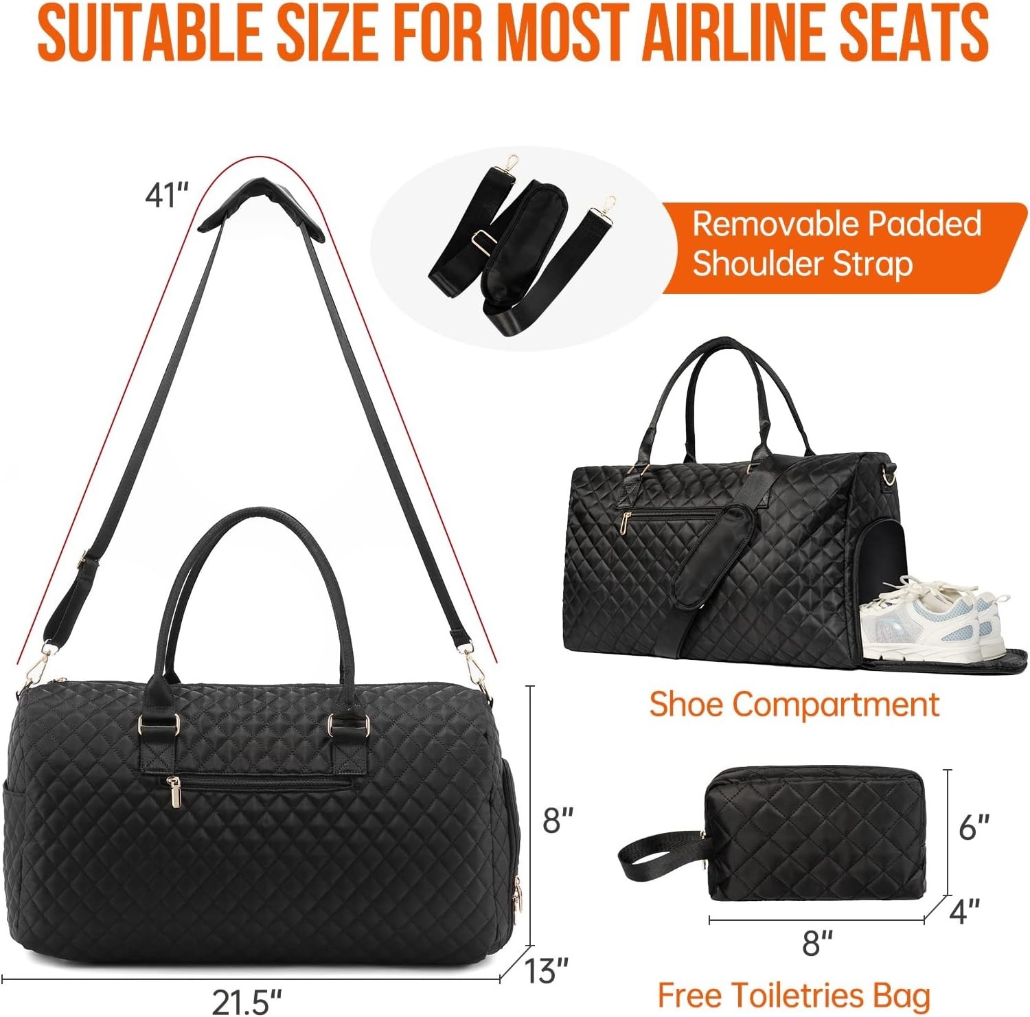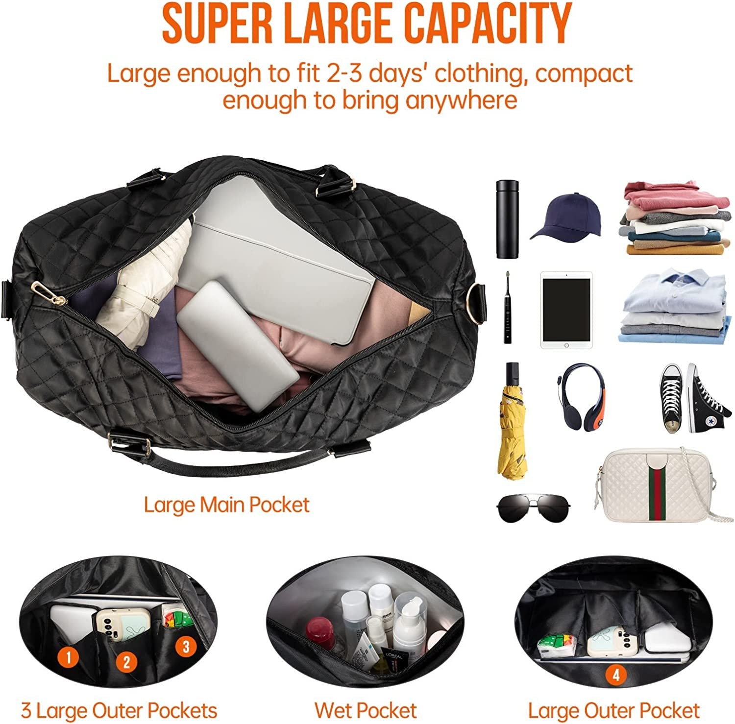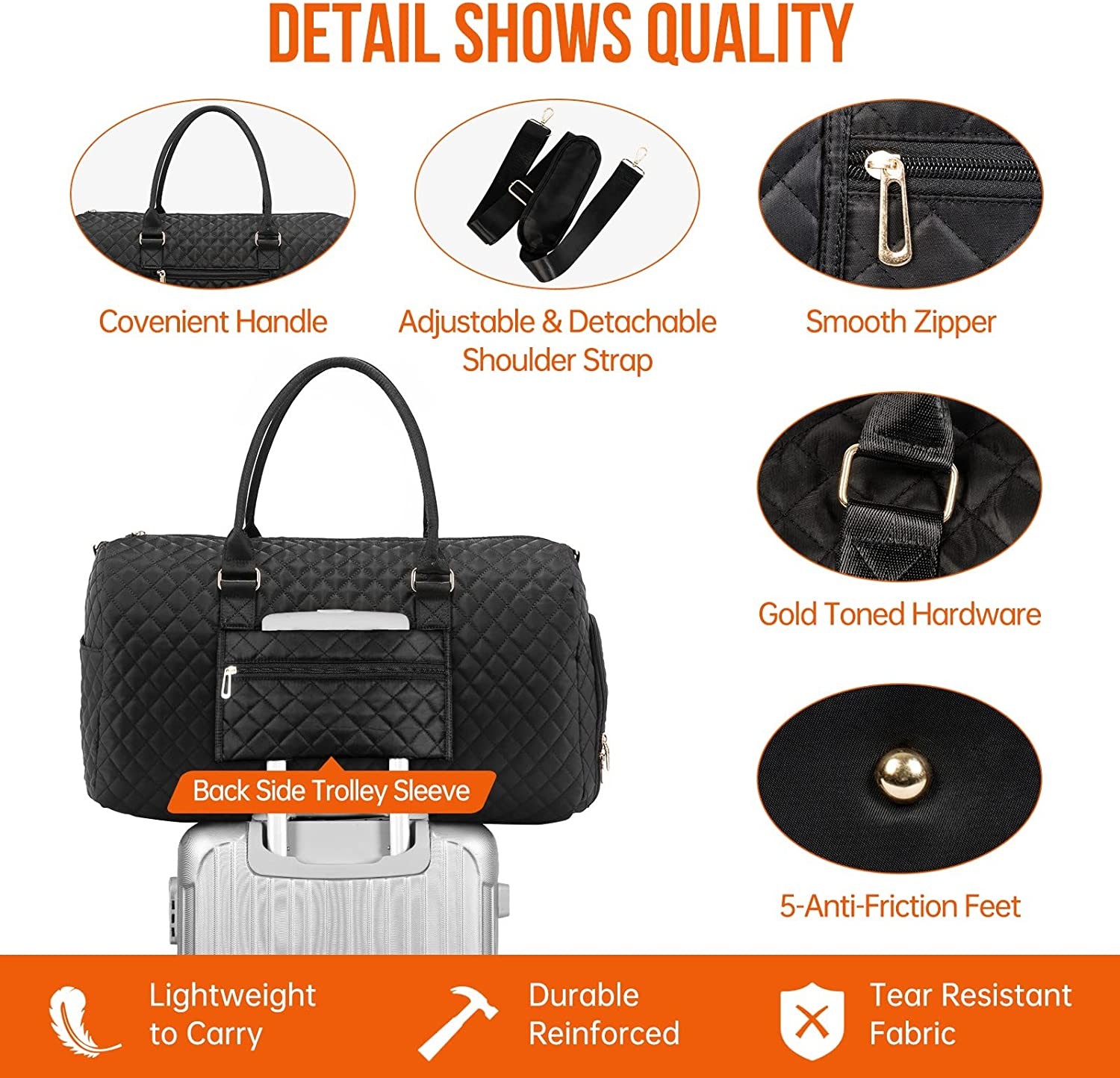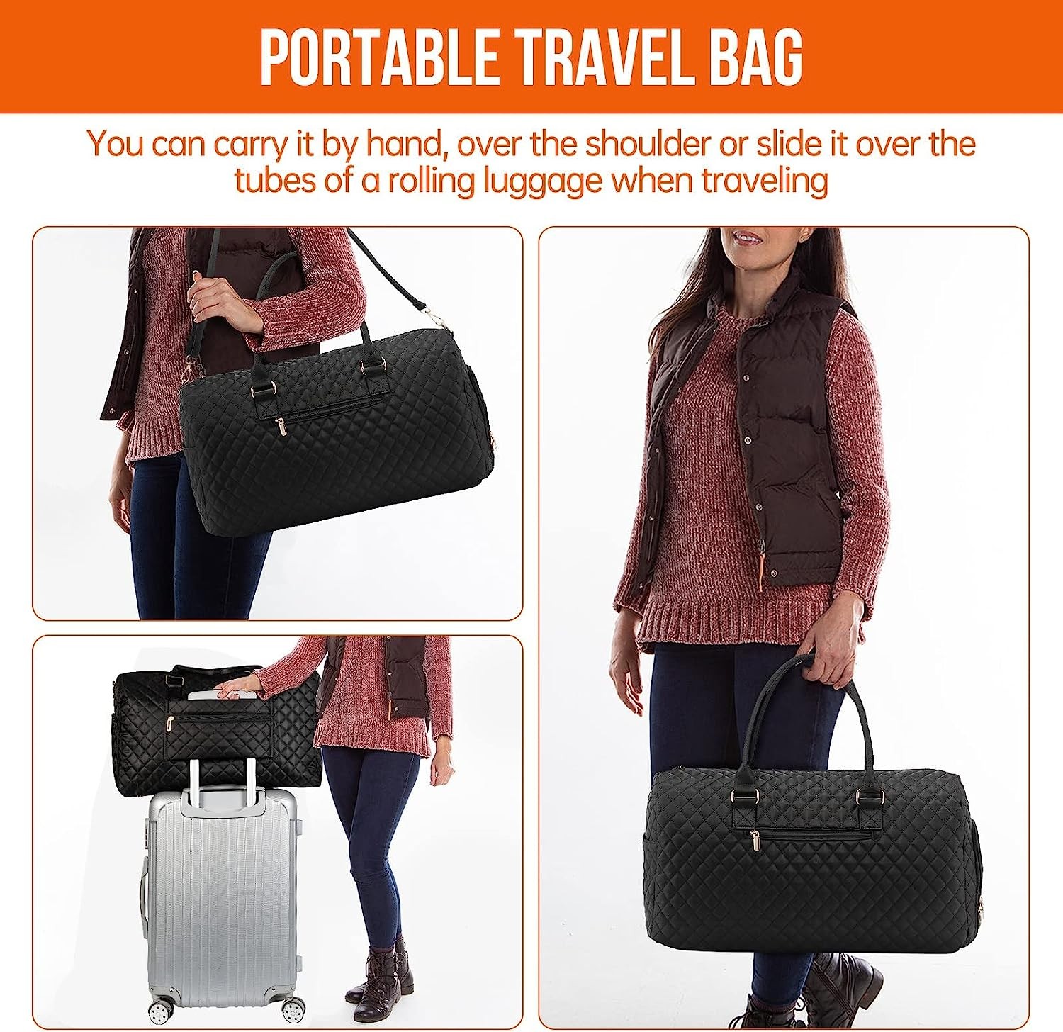 Weekender Bag Ladies Overnight Bag Carryon Weekend Travel Luggage Bag with Toiletry Bag Suitable for Daily Travel, Black//White,