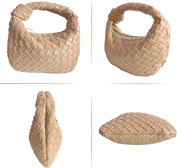 Women's Soft PU Leather Woven Handbag Summer Handmade Hobo Shoulder Bag Woven Clutch Knotted Casual Dumpling Bag (Apricot Color)