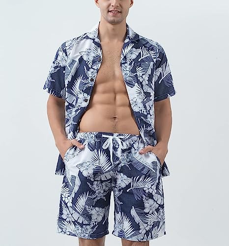 Year In Year Out Hawaiian Shirt and Short Set Men's Regular Fit Casual Hawaiian Shirt Set with Quick Dry