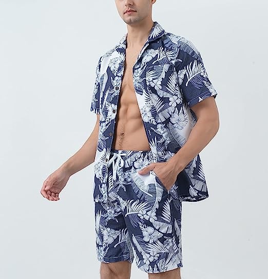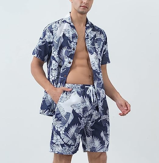 This Hawaiian men's shirt and shorts set comes in a variety of beautiful colors for you to choose from